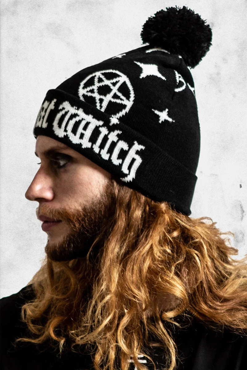 Look effortlessly cool in our ‘100% Witch’ Beanie, fold-up style with statement detail and a bobble top. Totally unisex, so it’s for everyone!