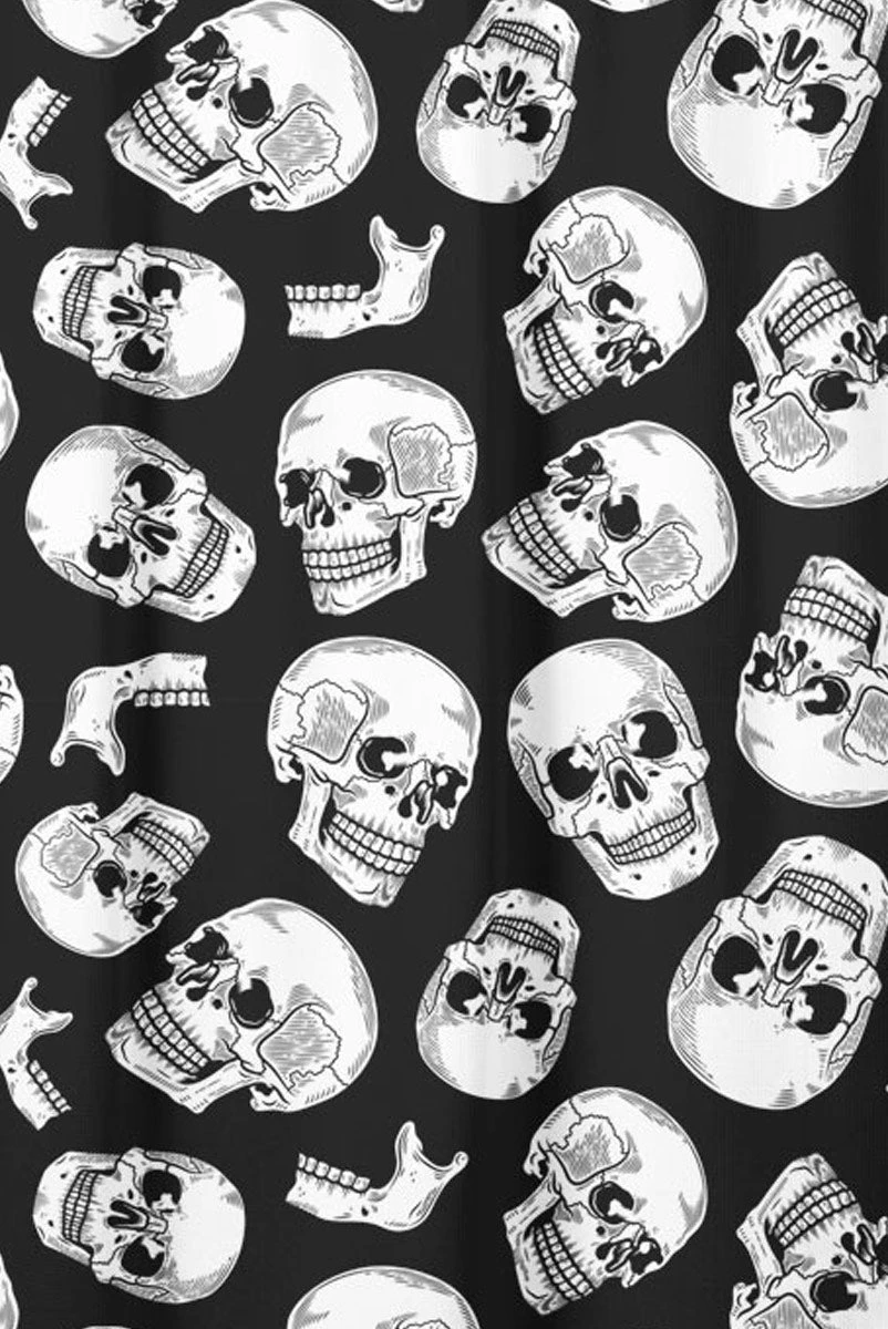Let your love of all things creepy extend into your bathroom with our Anatomical Skulls Shower Curtain! This spooktacular polyester shower curtain features an all over pattern of anatomical skulls on a black background.