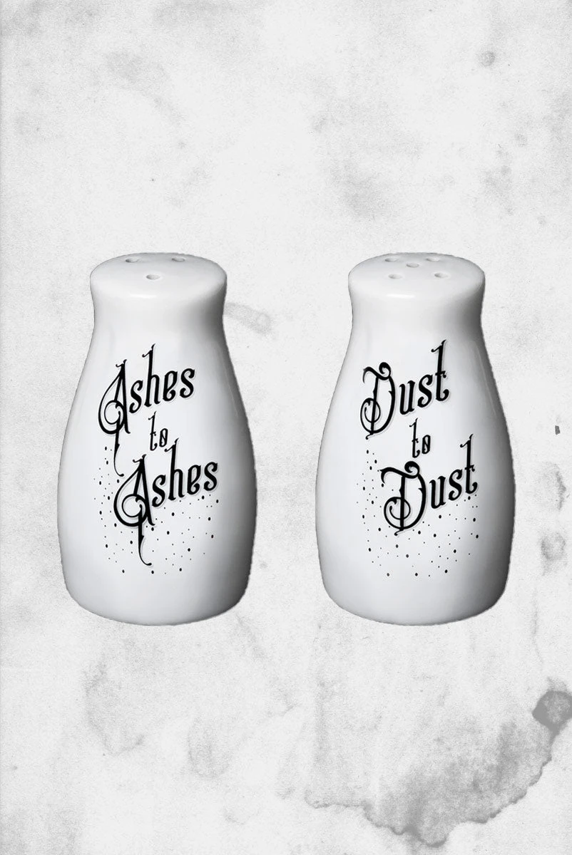The Ashes to Ashes Dust to Dust salt and pepper shakers keep a simple yet spooky design style that will let your inner darkness show even within your kitchen.
