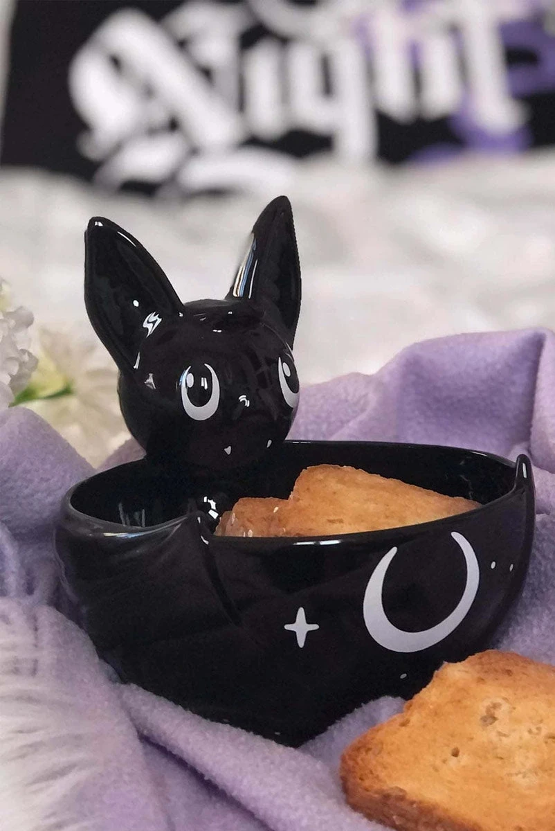 Looking for final touches for your crypt? Our ‘Batty’ bowl is sure to turn some heads! Large size ceramic bowl with a contrasting motif and in a bat shape. Complete with a black gloss finish. Perfect as a statement serving dish for breakfast cereals, soups or witchy potions. Extra deep so you can fit extra much!