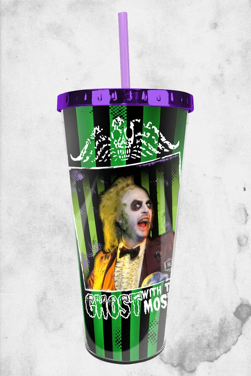 Say his name three times in the morning and pour your favorite drink into this tumbler featuring the ghost host with the most!