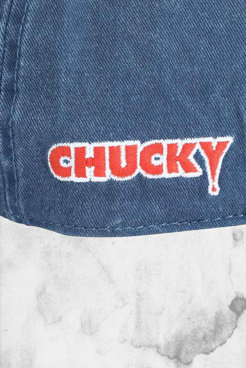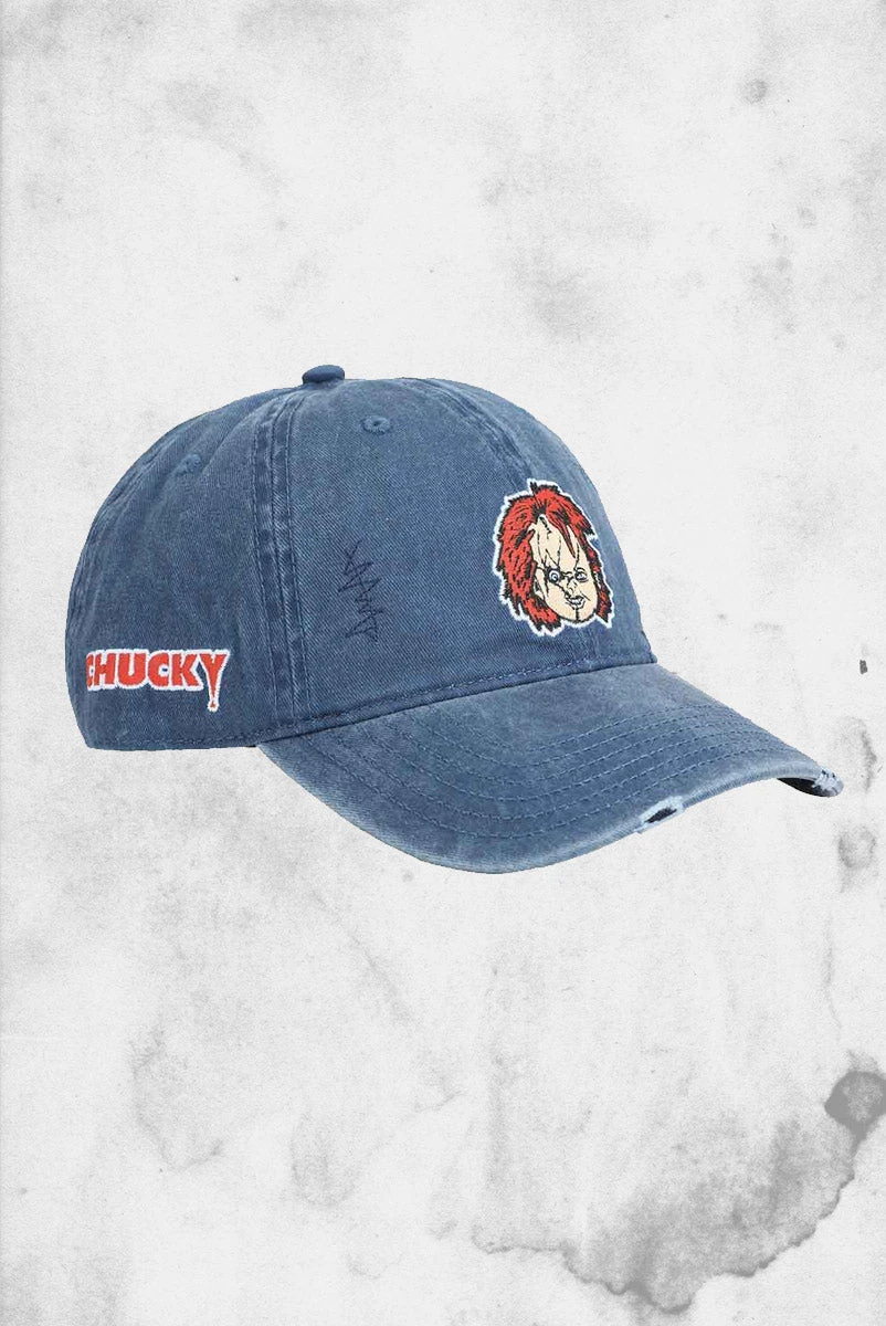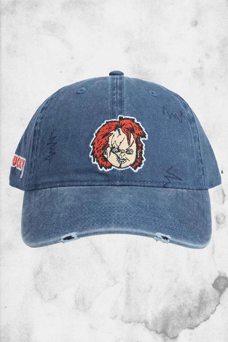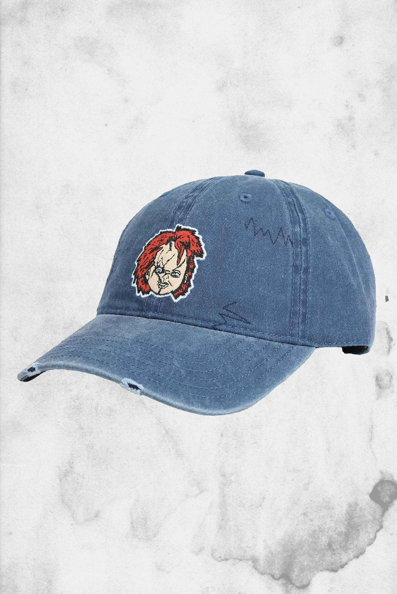 Add a little horror to your wardrobe with this officially licensed Chucky baseball cap that features none other than Chucky himself with a natural distressed hat style.