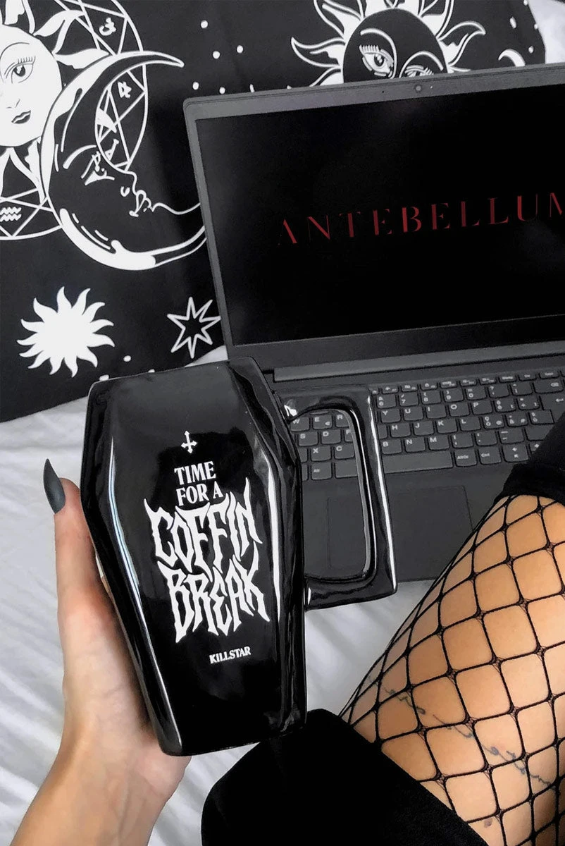 Drinking coffee to make mortals bearable since 1819. In a coffin shape, large in size and spooky print – good enough for even Dracula himself!