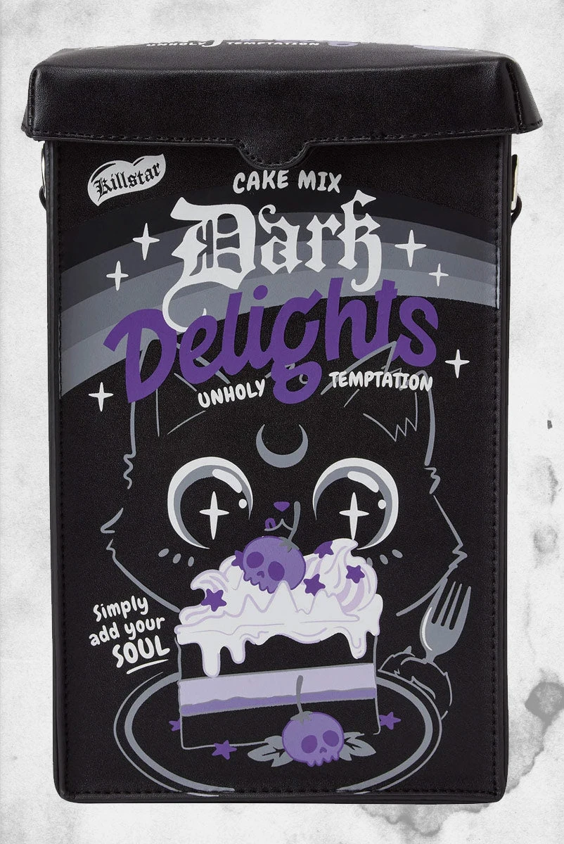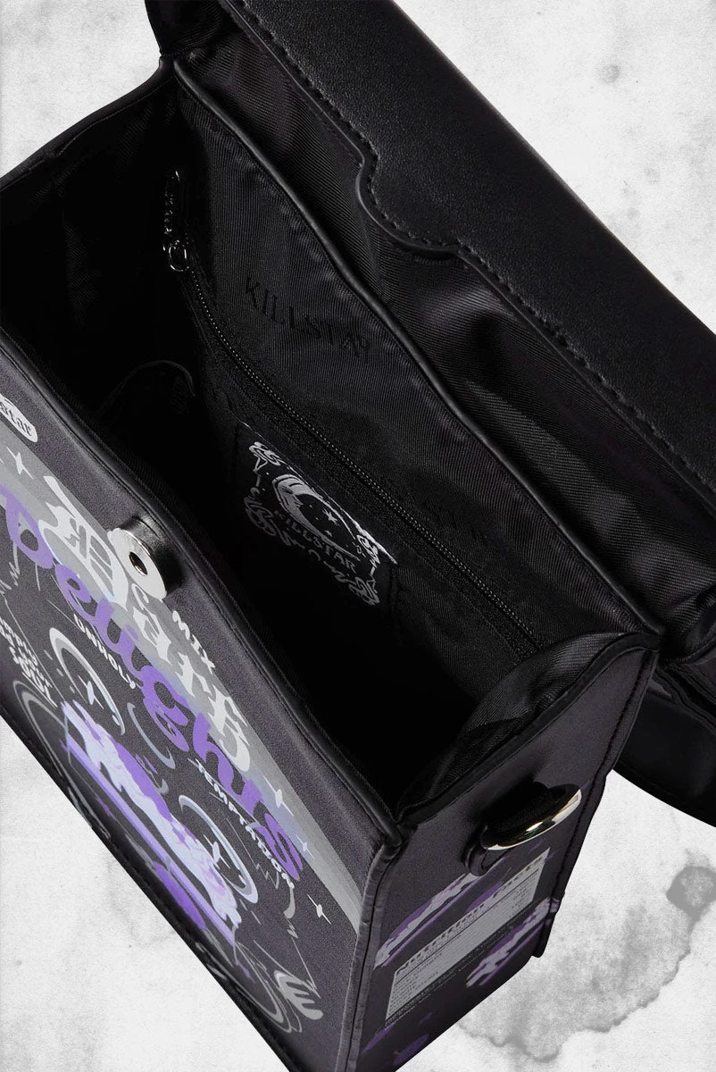 Give em’ something to talk about with the ‘Dark Delights’ backpack; a rectangle packet backpack with plenty of room for yer essentials. Statement print on all sides, zip closures, inside pockets, and adjustable straps. Comes with a handy chain strap so can be worn as a backpack or messenger bag – whatever yer mood. The perfect mix of angst and playfulness – easy to style and a sure head-turner.