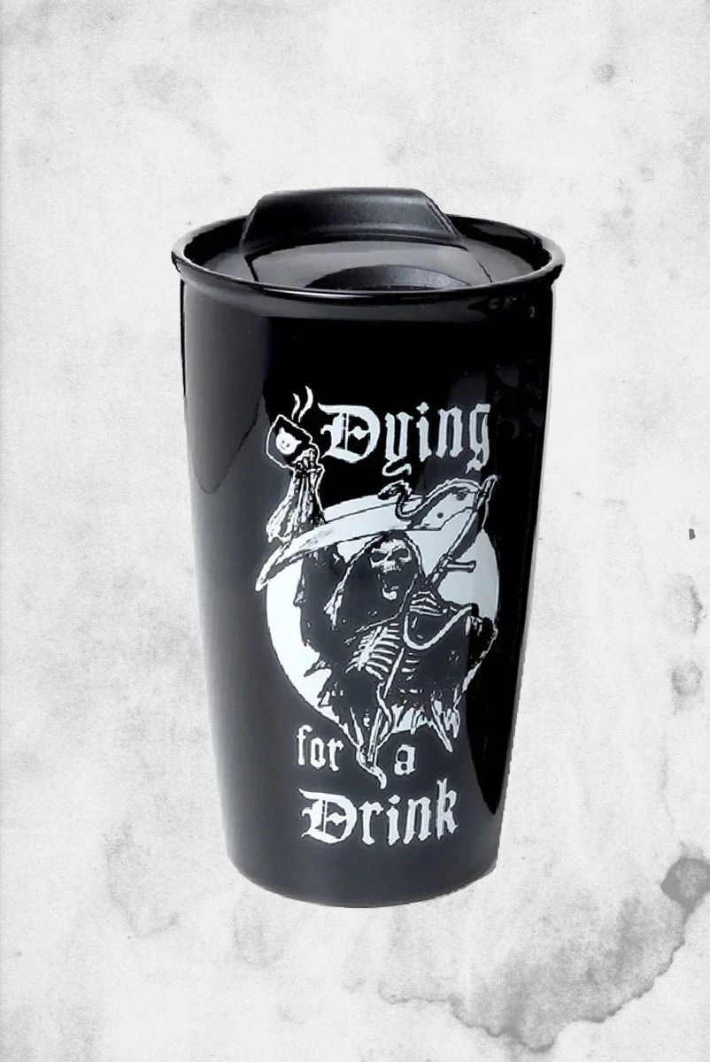 Take your style with you on the road with this 12 oz double-walled tumbler. This high-quality mug designed by Alchemy fits your dark and spooky style while allowing to express how we all feel… dying without coffee (or tea).