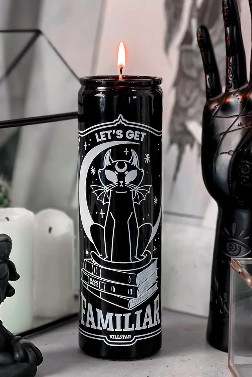 Brighten your crypt with our ‘Familiar’ Candle. Crafted in a glass container with a statement graphic, sweet plum scent and filled with black vegan, soy wax. The perfect piece for any altar, shrine or side table.