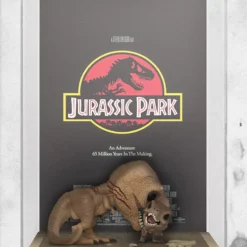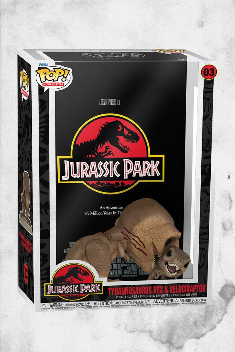 Relive action-packed moments from the adventurous film Jurassic Park! Feast your eyes on the ferocious Tyrannosaurus Rex saving the day by defeating the troublesome Velociraptor, while the mortals flee the premises. Caught in mid-chomp, this 6-inch scale T-Rex is presented in its full prehistoric glory. The Jurassic Park Tyrannosaurus Rex 6-Inch Pop! Figure and Velociraptor Pop! Movie Poster with Case includes the movie’s iconic poster art and comes packaged in a window display box, complete with a hard case! Measures approximately 11-inches wide x 17-inches tall x 5 1/2-inches deep. The Velociraptor Pocket Pop! figure measures approximately 1 1/2-inches tall in this pose.