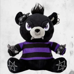 Adorable and full of angst, ‘Gothy’ plush toy is a massive 30cm of huggable soft plush fur, striped jumper, earrings and embroidered details. This little cuddle buddy packs some real attitude! Purrfect for gifting – or best of all, for yourself!