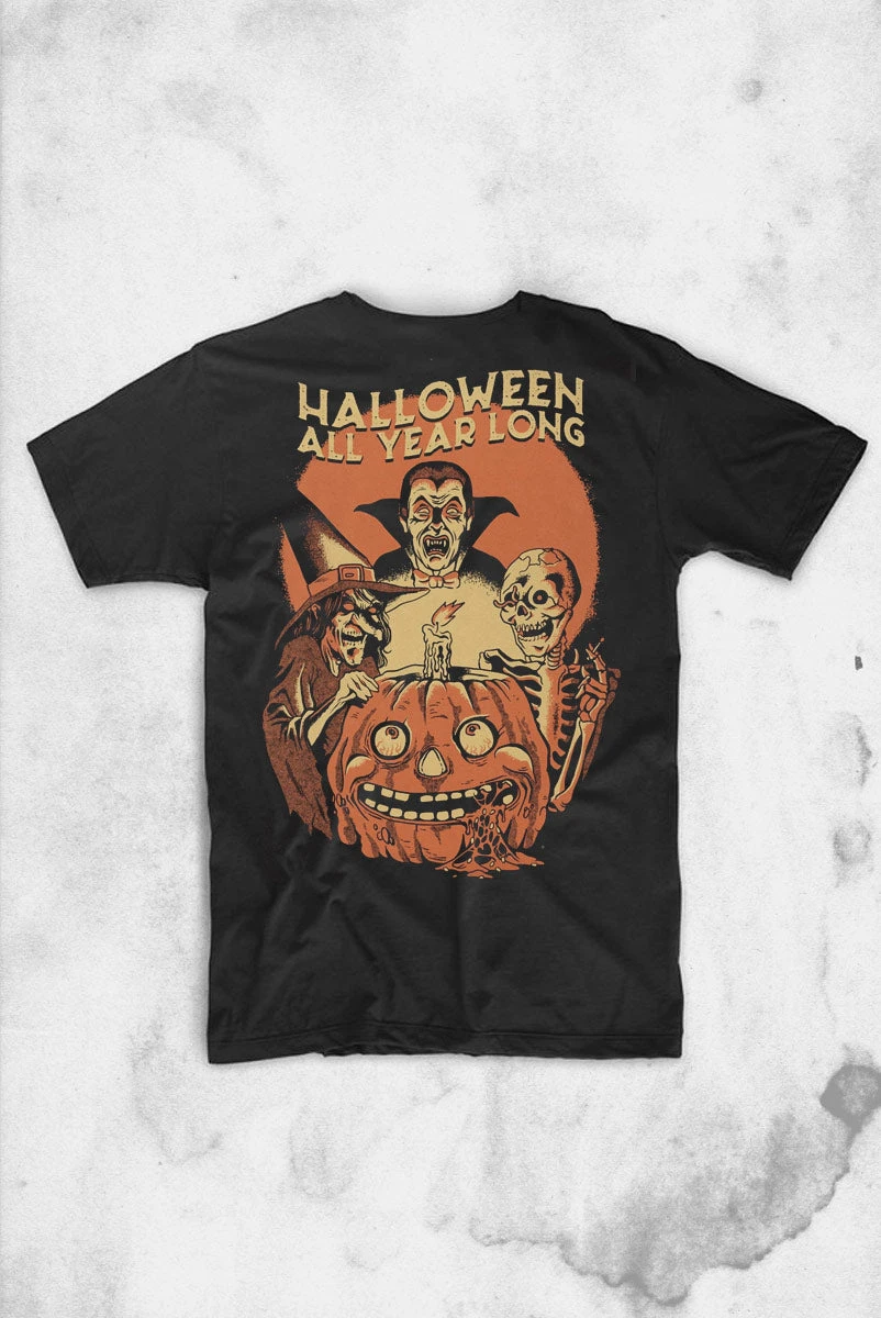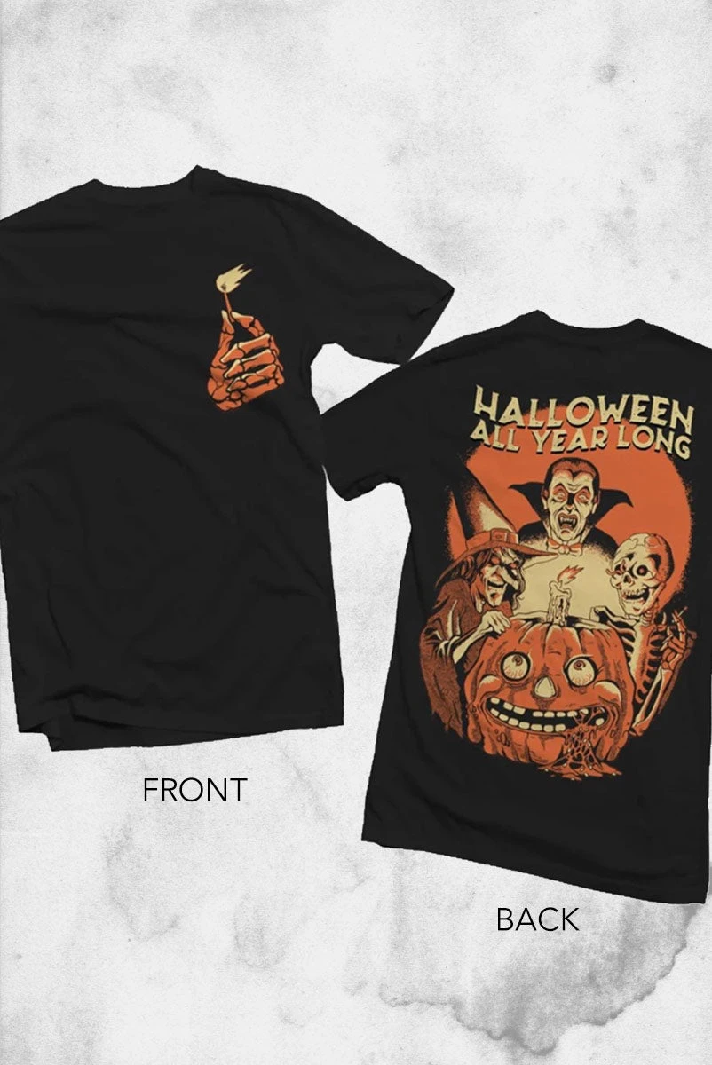 Halloween for some of us is every day and all year long. Now show it to all of your friends with this Halloween Shirt Co t-shirt that represents the spooky and best parts of Halloween. This shirt features a print on the front and back and will leave that candle inside burning bright for Halloween all year long!