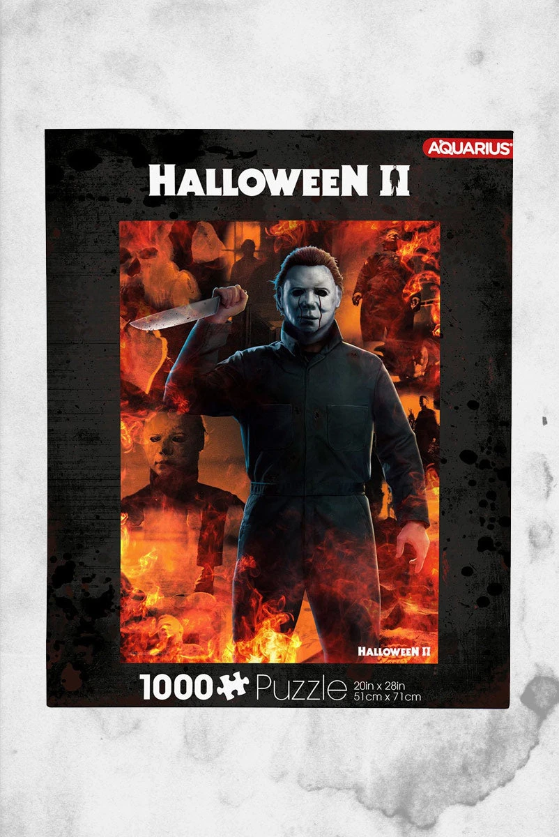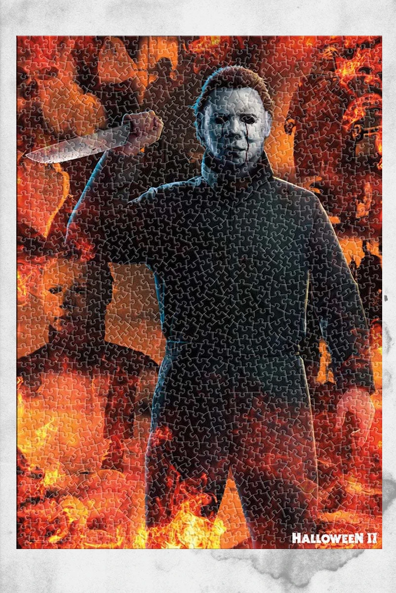 It takes a tad of courage to assemble a puzzle like this, but we think you will stand the test. The Halloween 2 Fire 1,000-Piece Puzzle may be intimidating, but if you paused on this item, it just might be for you or someone you know. Your pal Michael Myers is featured front and center in the image on this 38-inch tall x 20-inch wide puzzle.