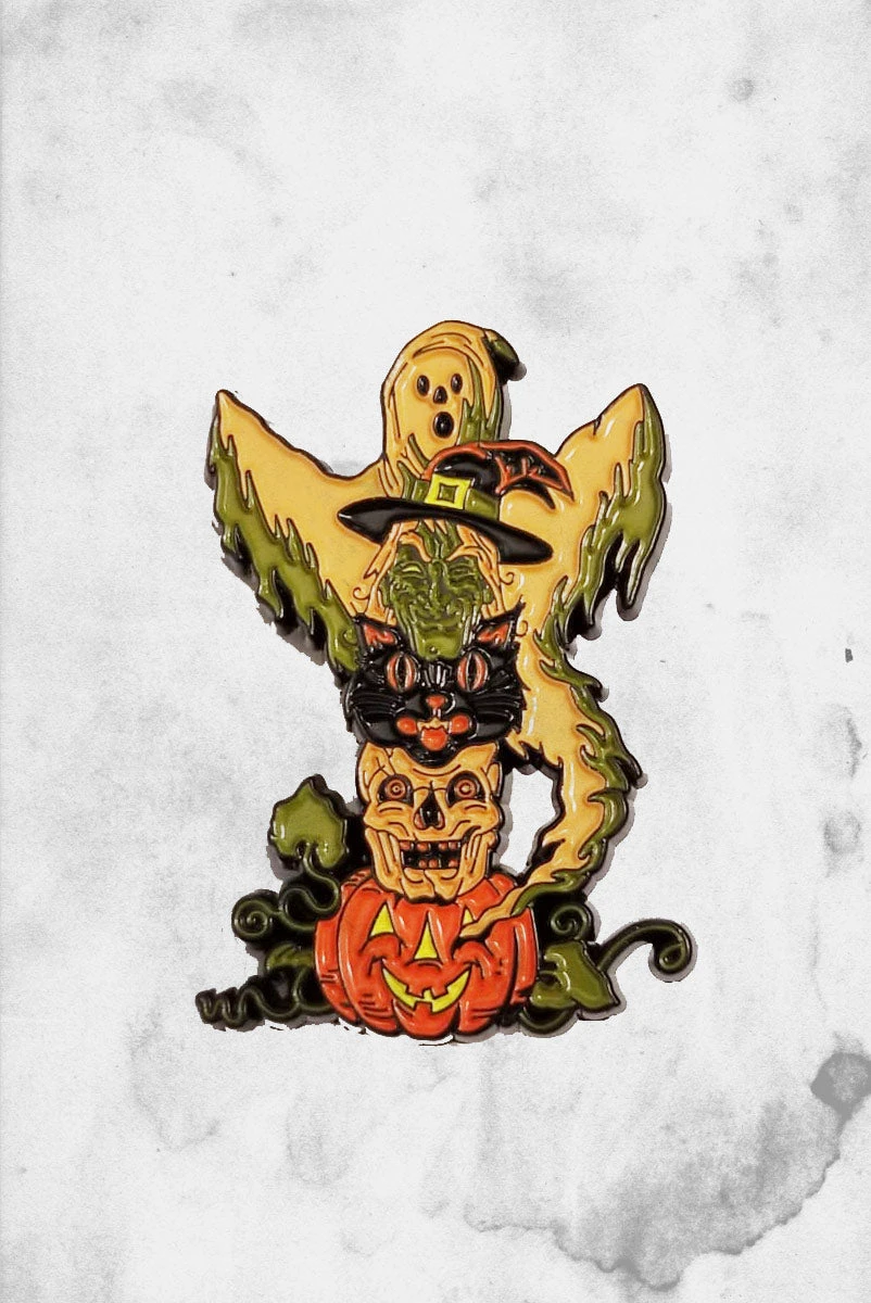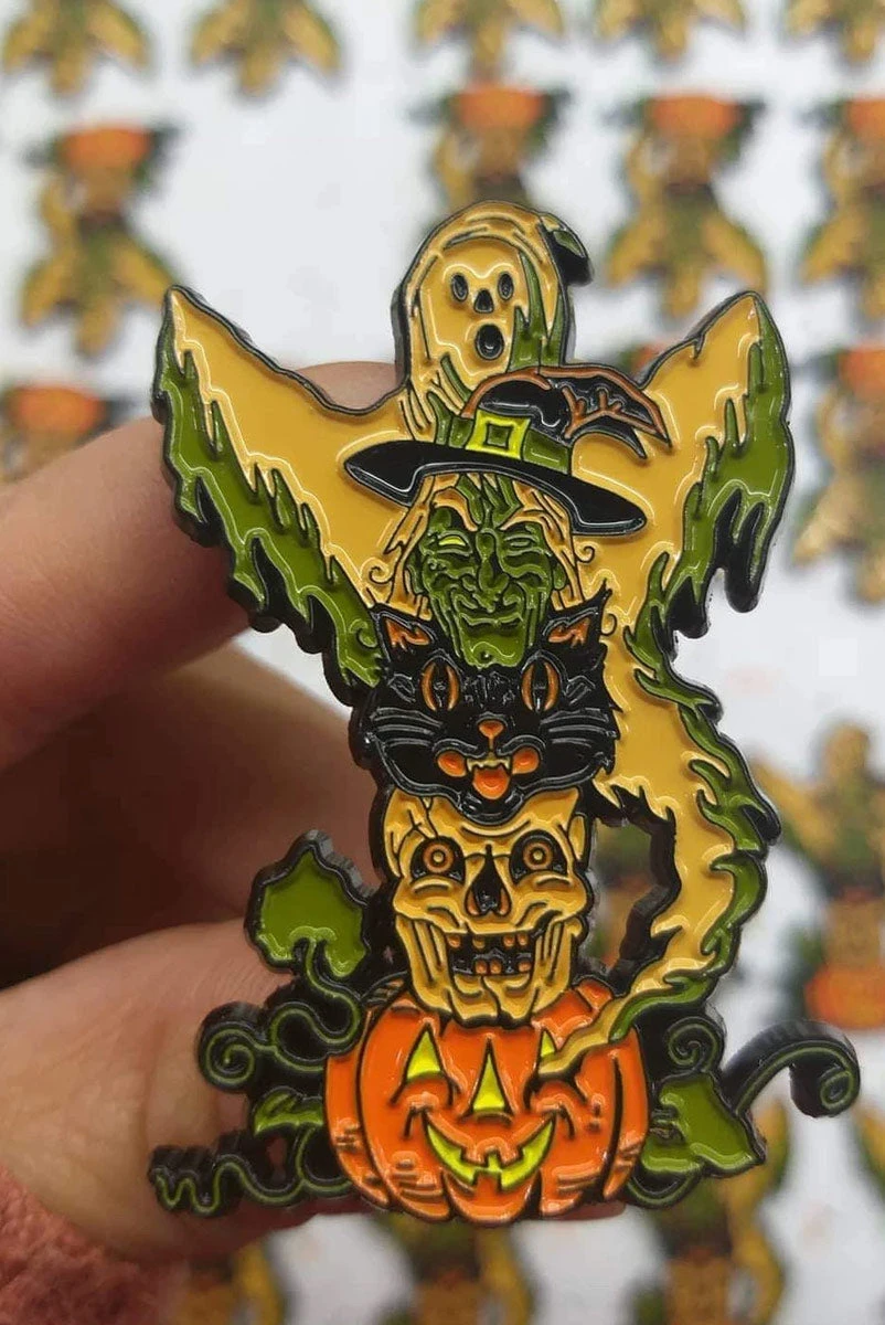 From a spooky bat to a flying ghost this pin combines everything that’s great about Halloween all into one enamel pin that any Halloween collector must have!