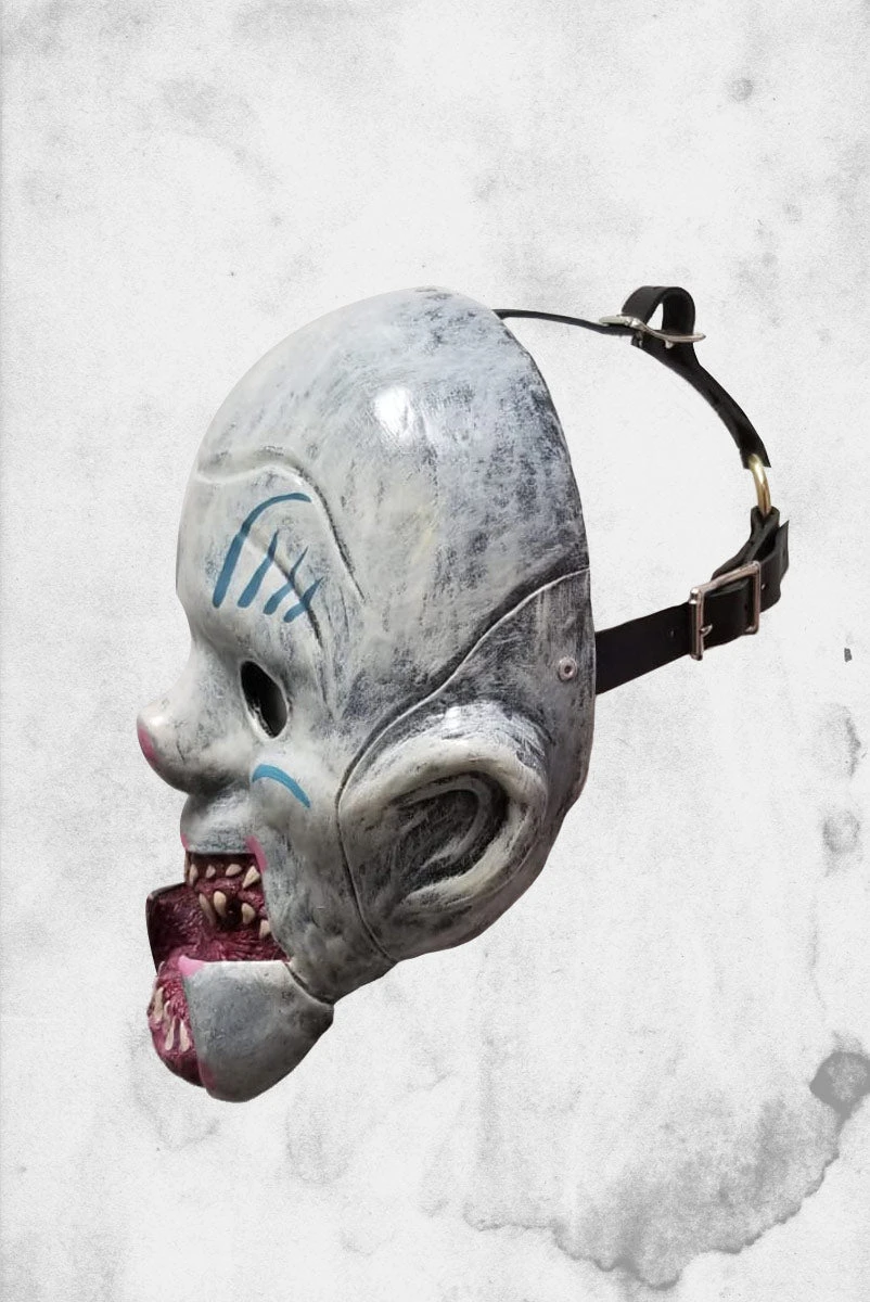 Happy Jack created by Dead Rabbit Studios is one of the most unique masks to add to your collection. Whether you’re looking to scare the kids this Halloween or adding it to your unique horror collection this mask features a creepy coll/jack-in-the-box style creature.
