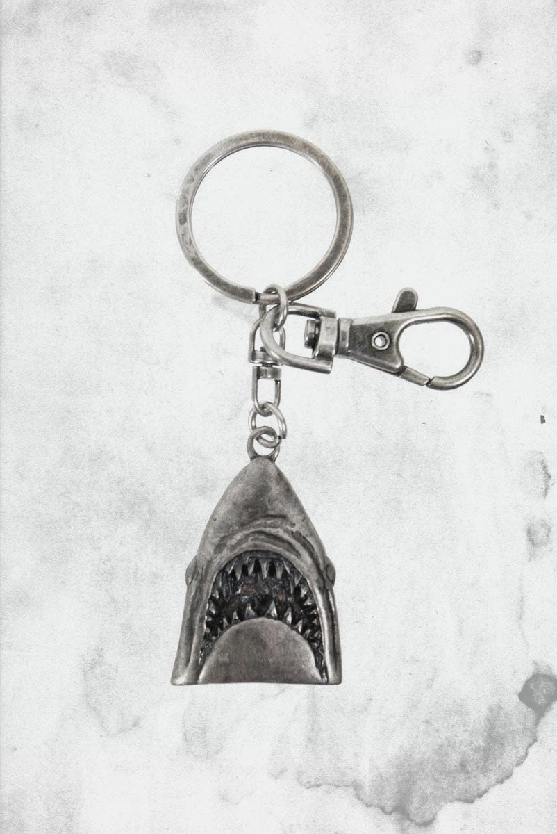 The head of Bruce the classic monster from the 1975 horror movie, JAWS in full detail on a sturdy keyring with clasp. This keychain is a heavy duty metal but still light weight so you don’t notice it on your keys.