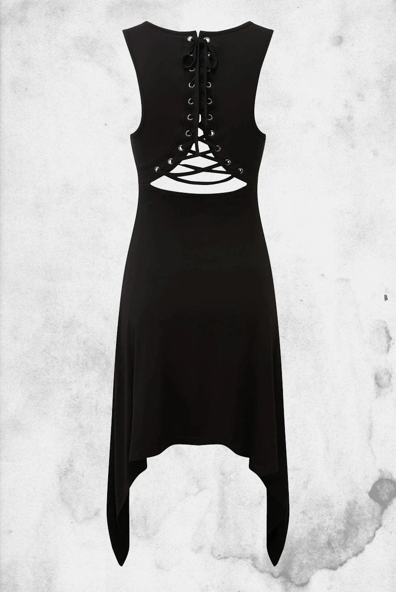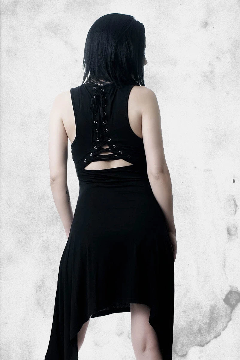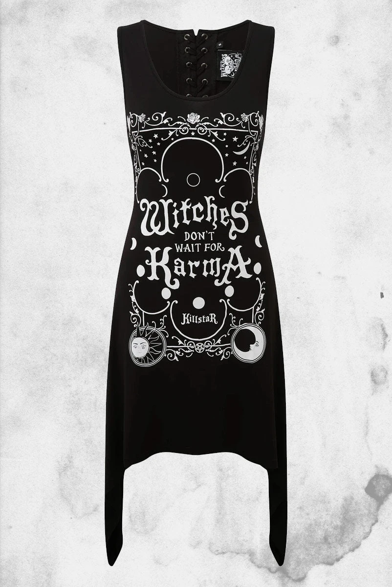 Luxe jersey with a flowy fit, accenting the right lines whilst keeping it playful. The ‘Karma’ laced-up tunic by Killstar has a large statement print on front, elongated sides, low neckline and delicate lace panels on the back – as well as eyelets and lace-up feature. An ideal day-to-day piece to inject some instant glam.