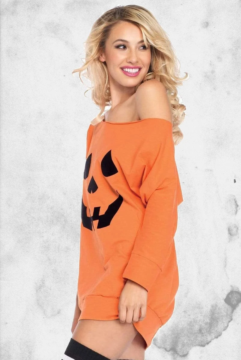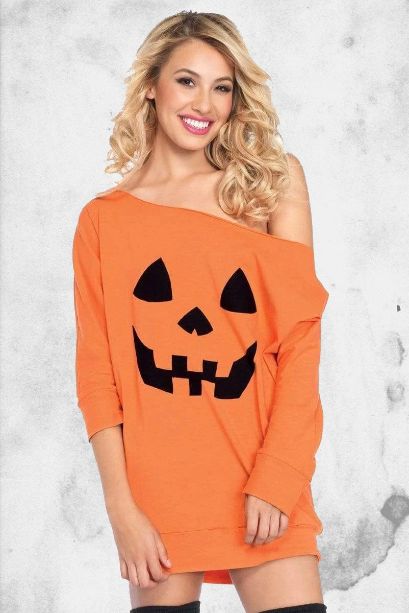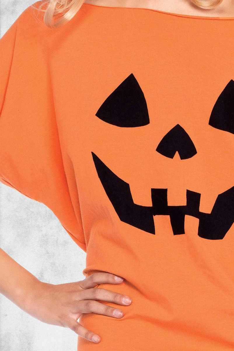This jersey pumpkin dress is both a classic costume or something to wear around the house. Wear this costume to a party, while trick or treating, or while frolicking in a patch for other pumpkins who don’t look nearly as stylish as you!