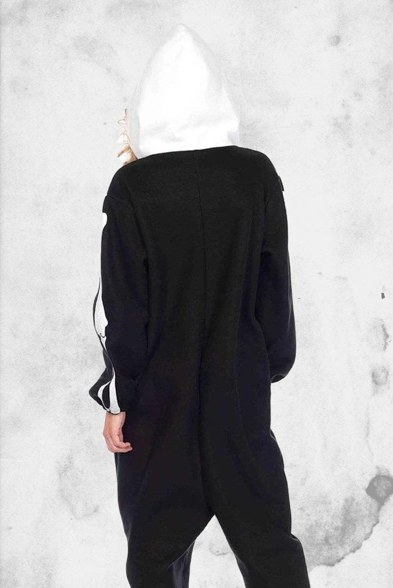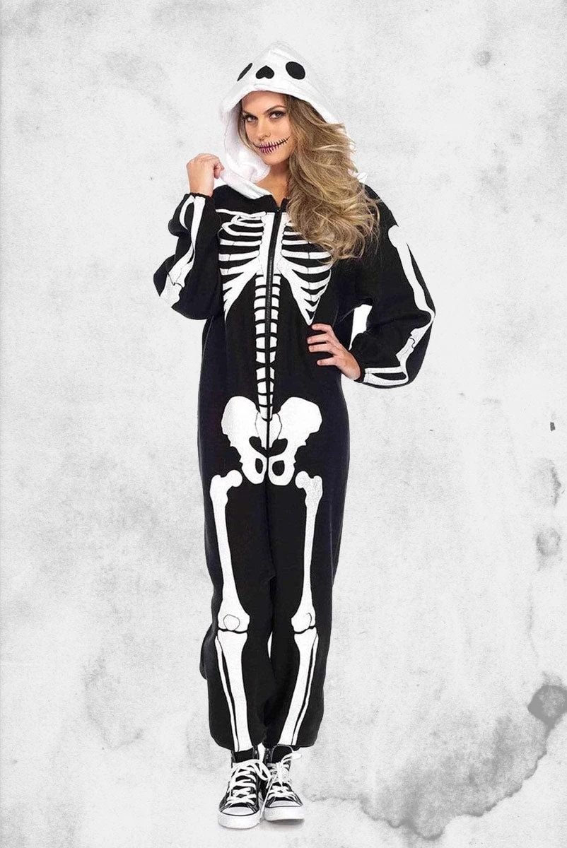 Be cute and spooky while sititing around the house or going to your favorite haunted house with this cozy skeleton themed onsie. Who says you have to have a complicated Halloween costume that takes hours to put on, just slip into this and be ready to go (plus, be warm and cozy!)