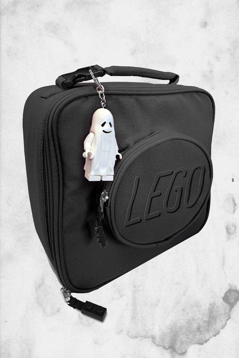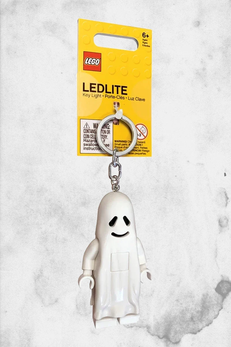 The LEGO Classic Ghost Key Chain is a highly detailed 175% scale (3in) replica of the LEGO minifigure with LED lights in his feet (one in each foot)!