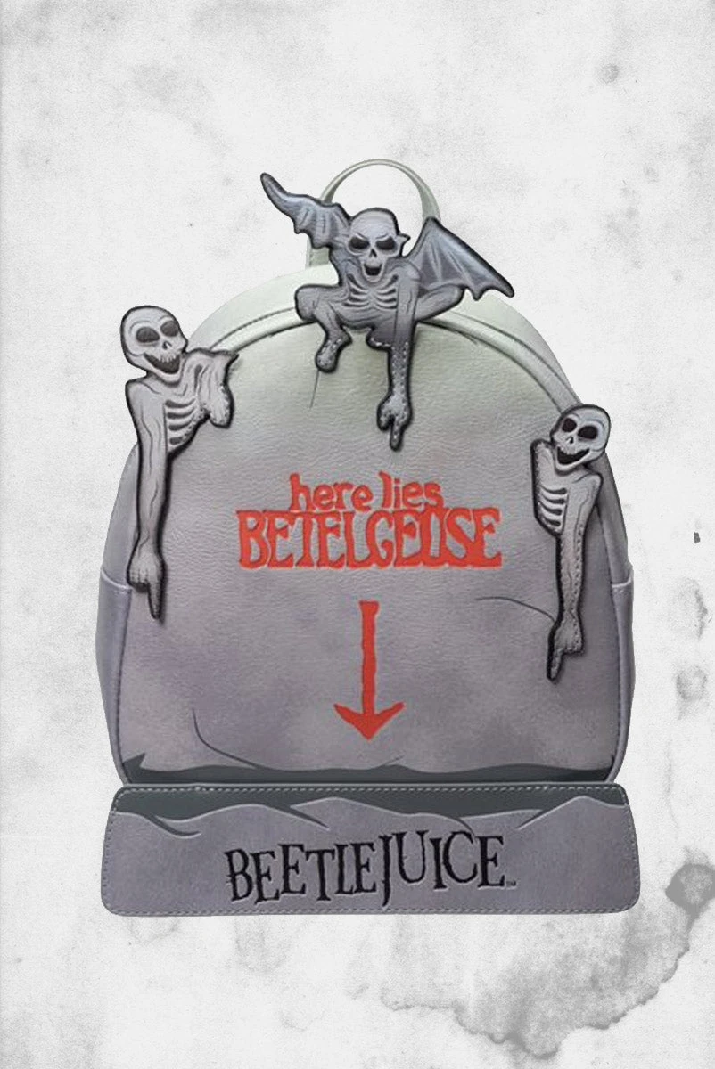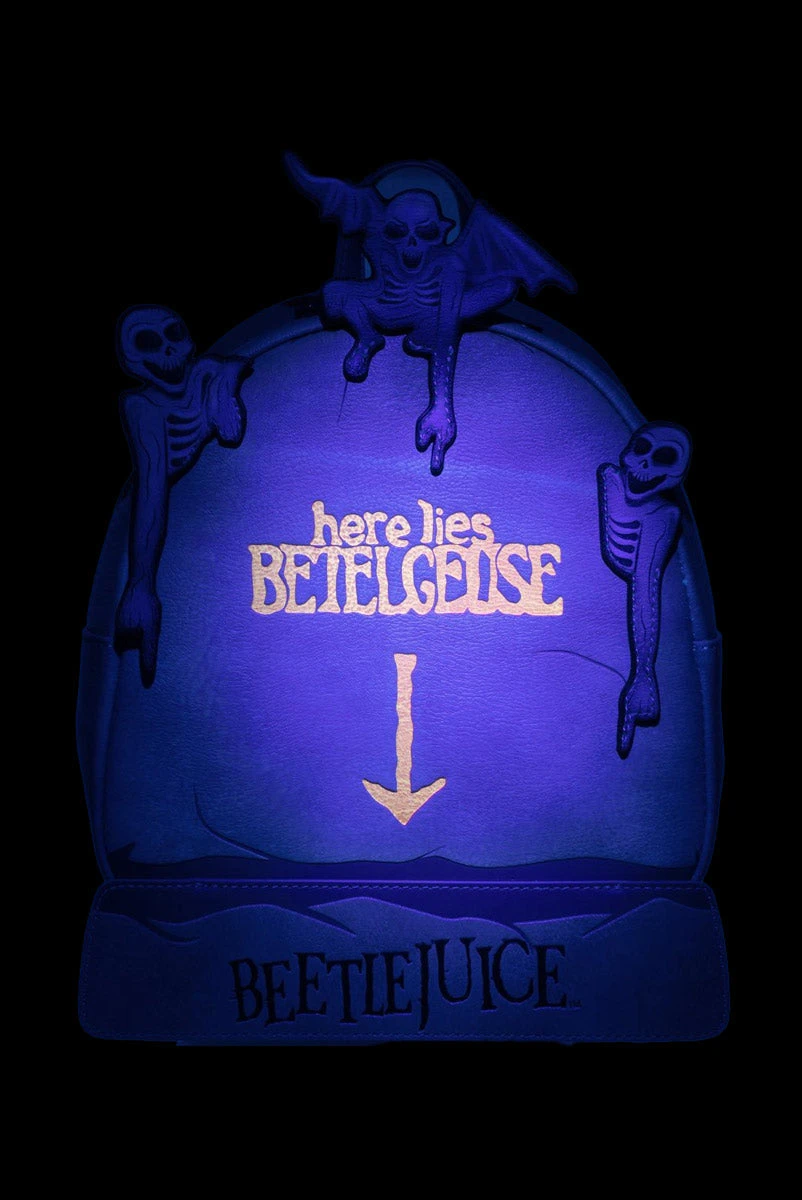 Make sure you study your Handbook for the Recently Deceased and order this exciting Beetlejuice Tombstone Glow-in-the-Dark Mini-Backpack .