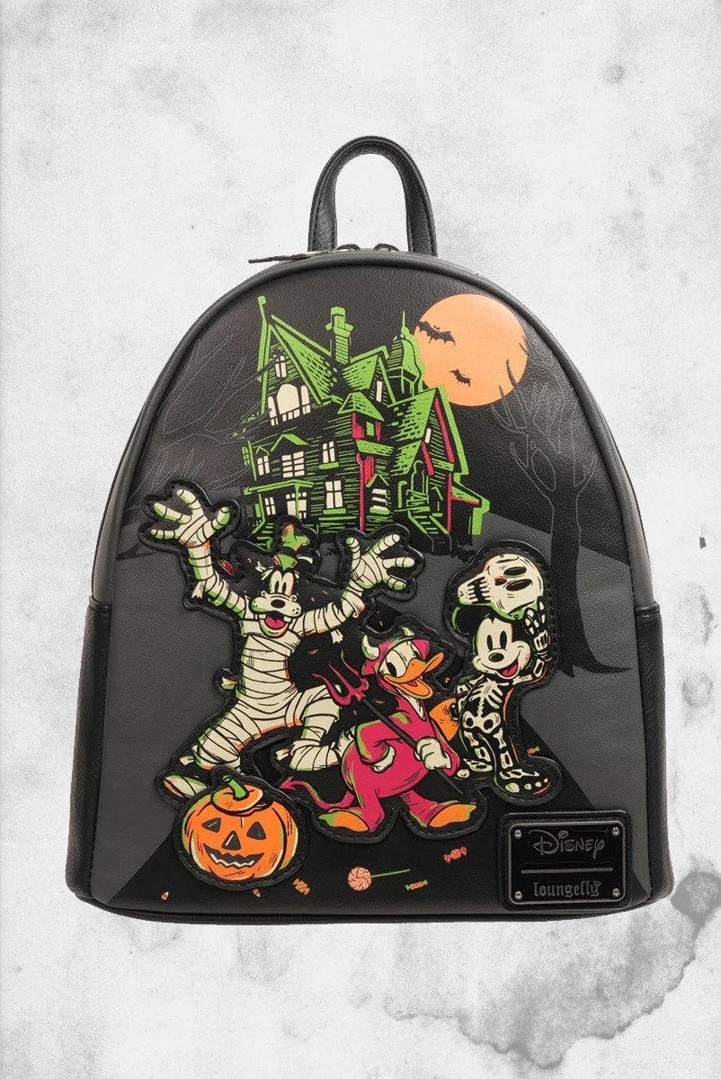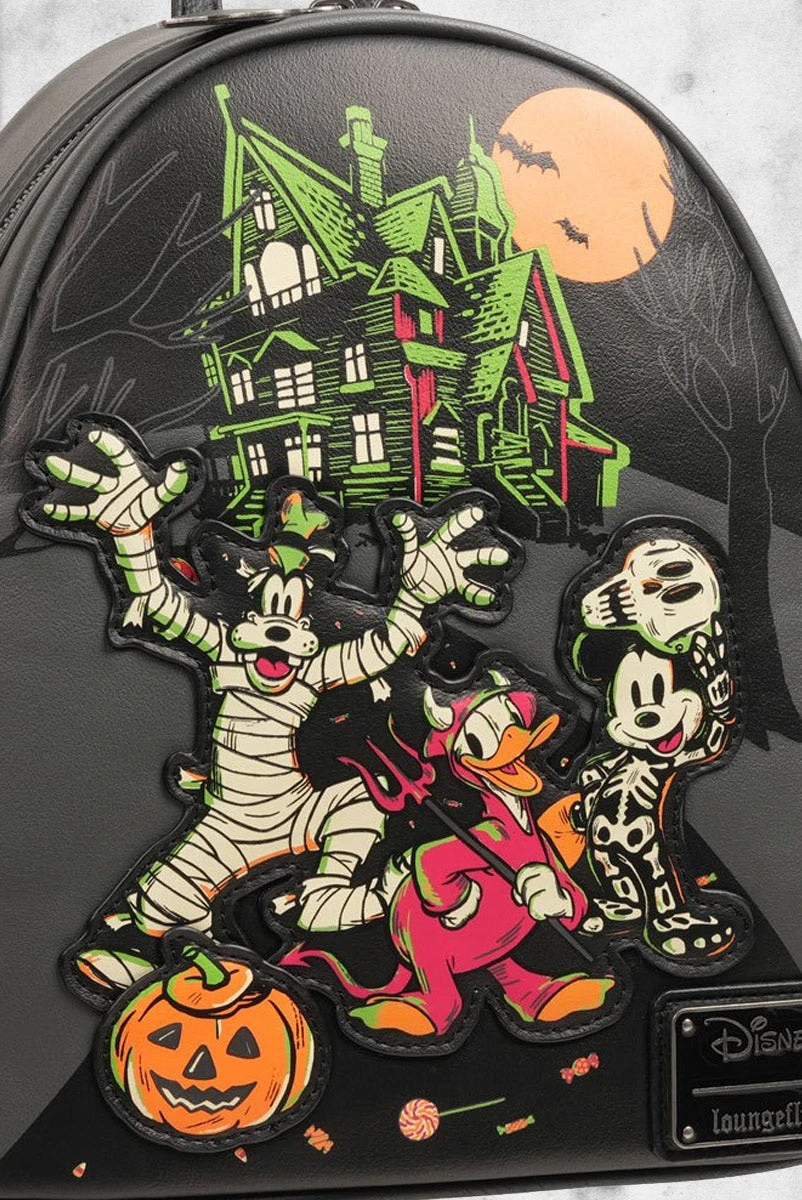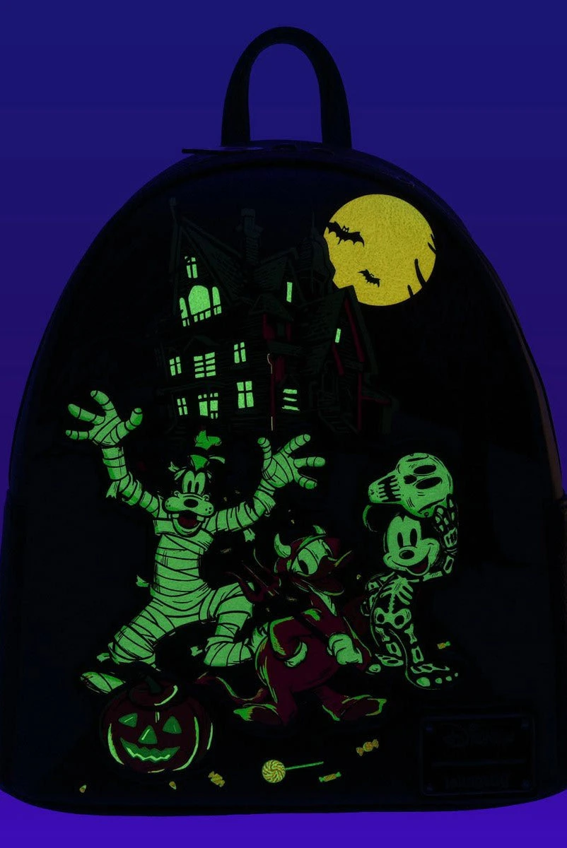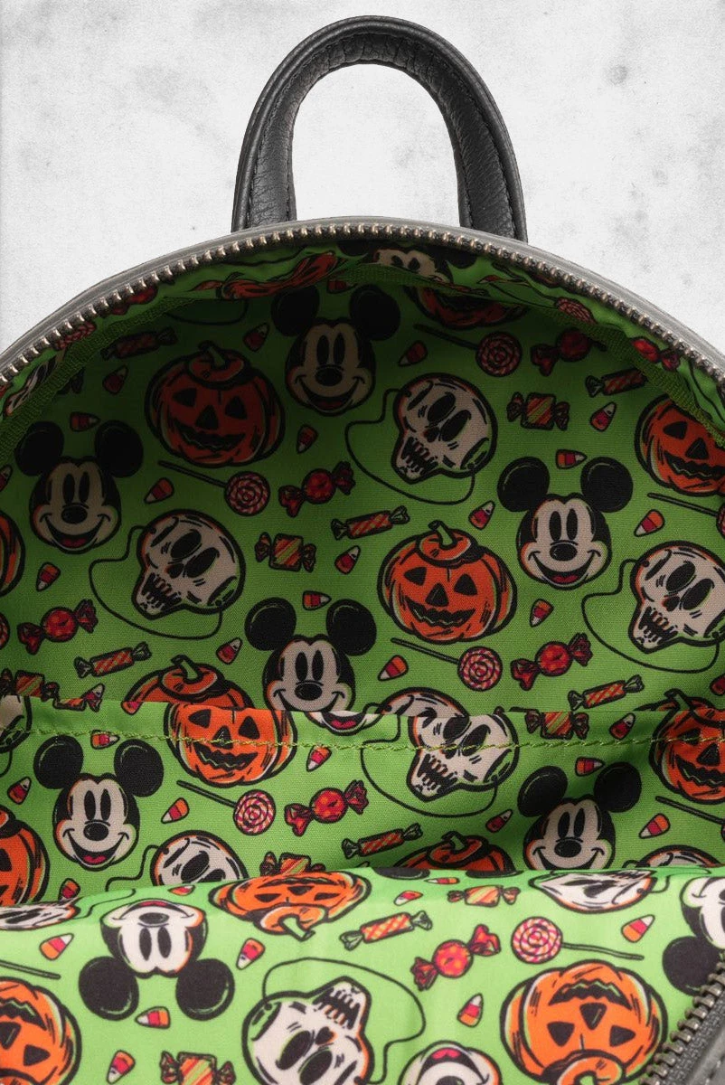Get ready for the spookiest time of the year with this Disney 100 Halloween Trick or Treaters Mini-Backpack – it’s made of faux leather and features top zipper closure, adjustable straps matching themed lining, antique silver hardware, glow-in-the-dark, and printed details. This terriffic mini-backpack makes a fun gift for any Disney fan.