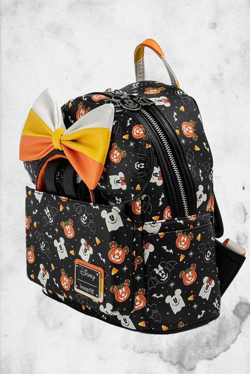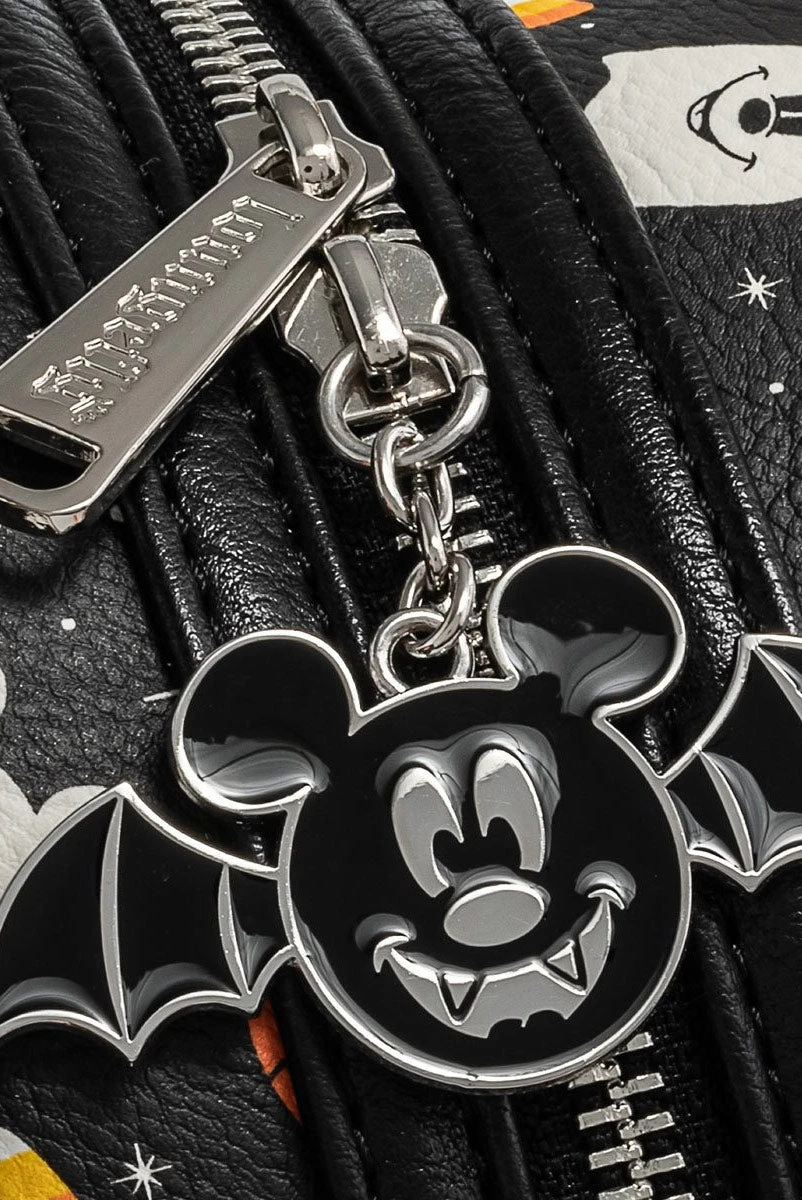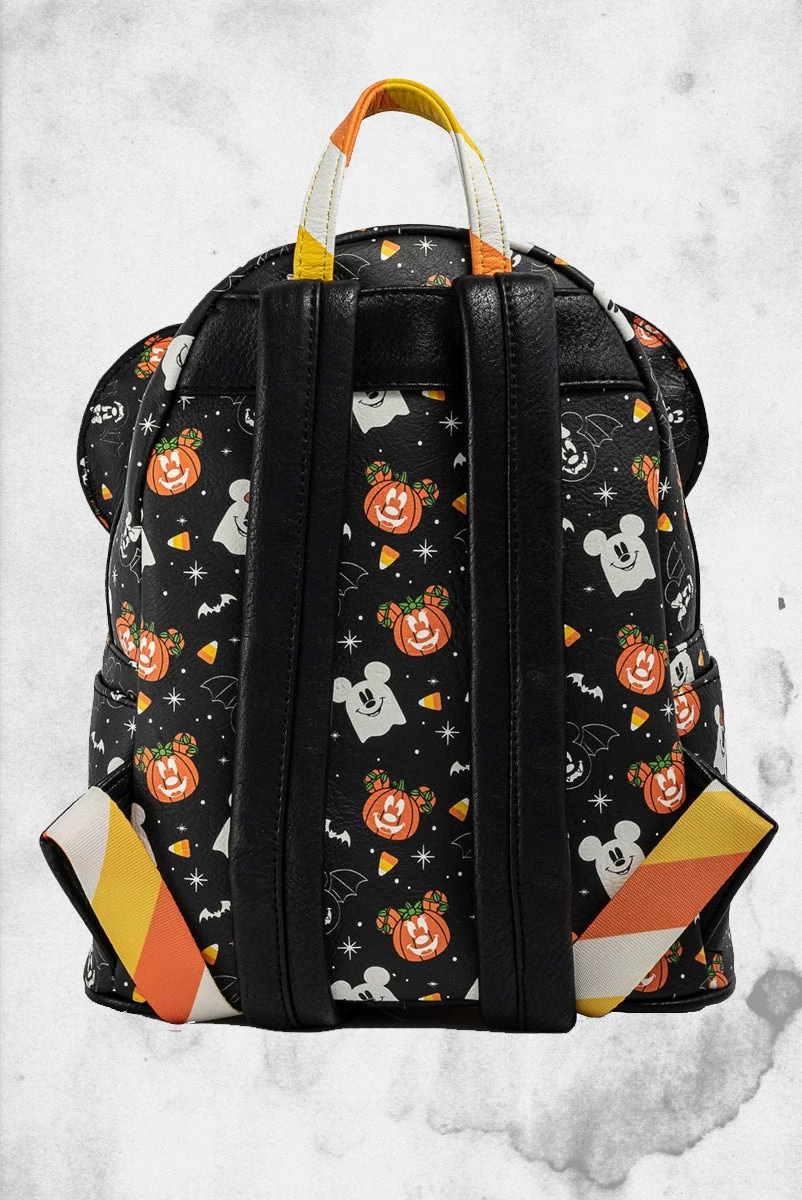 Introducing the Spooky Mice Mini Backpack and Headband Set from Loungefly. This faux leather mini backpack features applique details and adjustable straps. In addition to the Headband, the backpack features a special headband holder