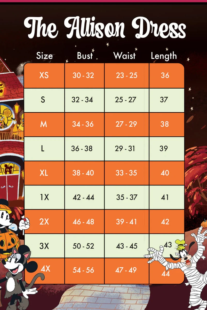 Each dress also comes with a matching enamel pin of Autumn Ghost Mickey, which is approximately 1.5-inches tall. This pin is only available with this Stitch Shoppe by Loungefly collection!