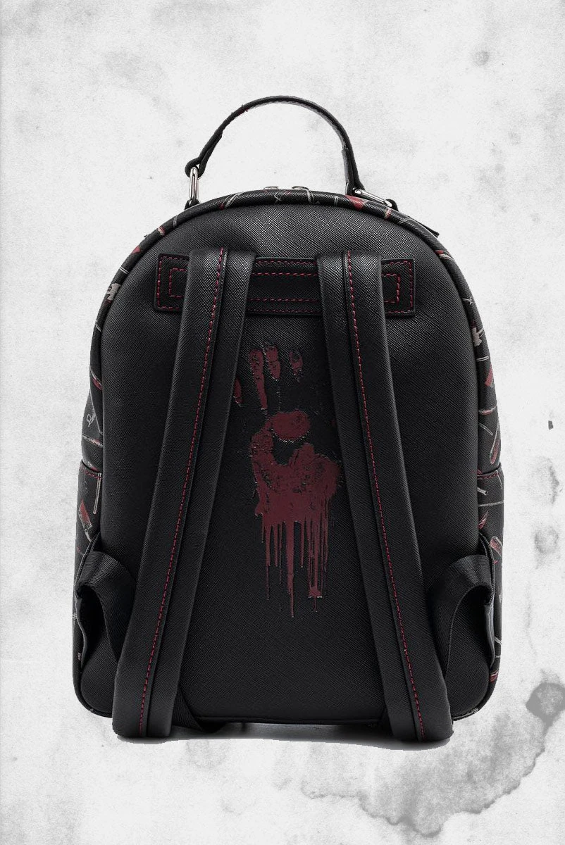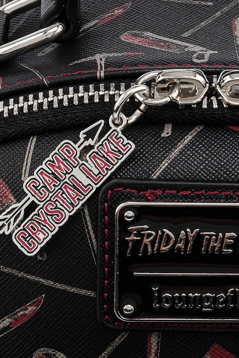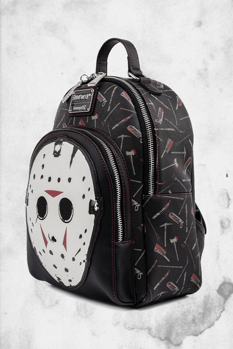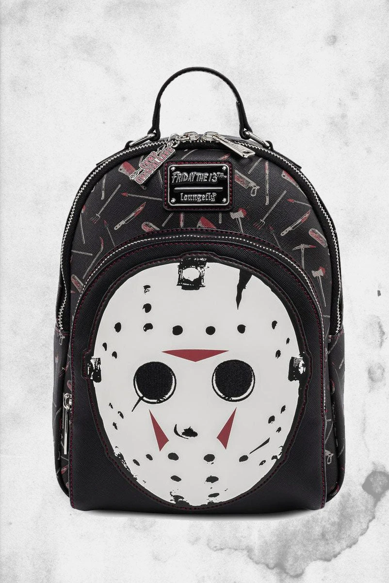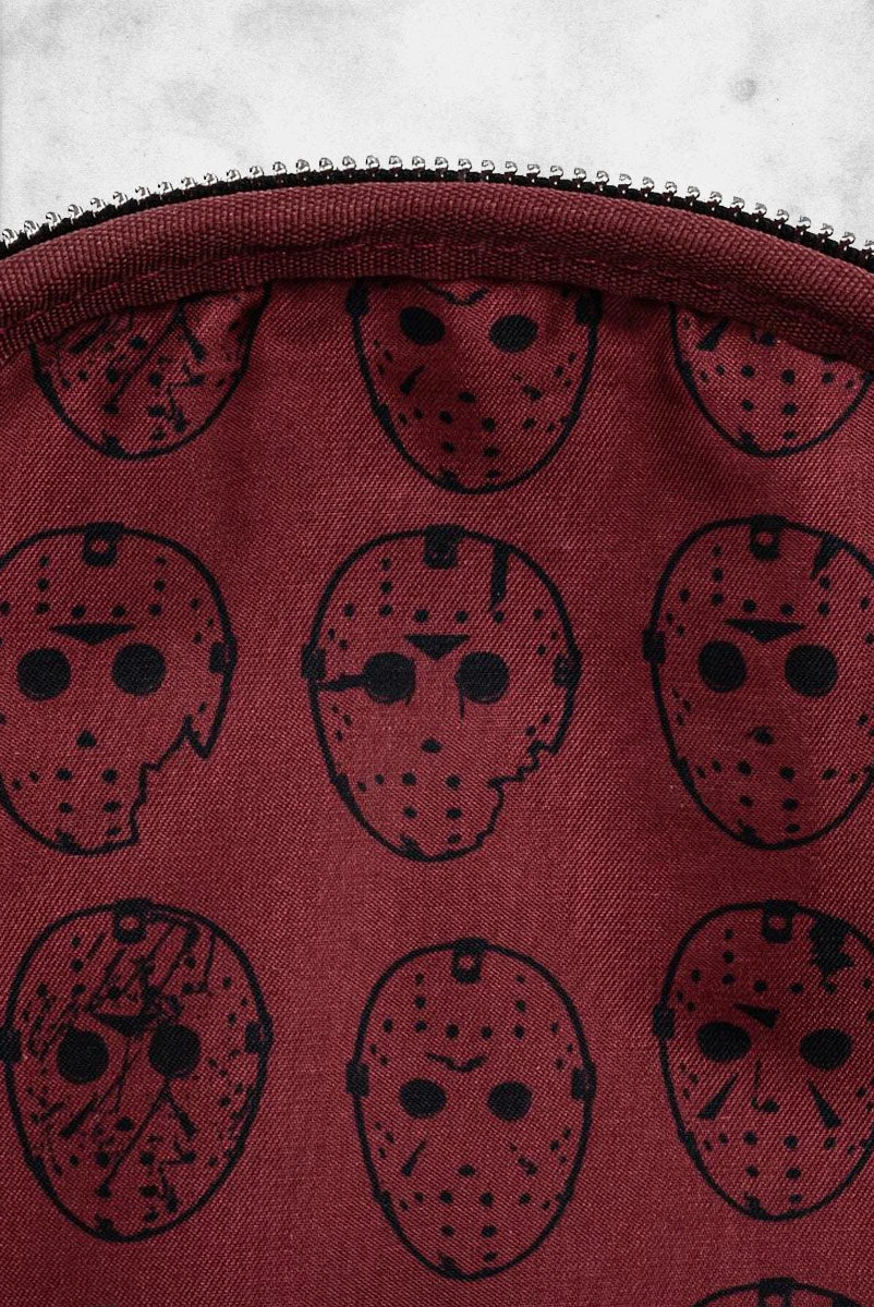 Show off your Friday the 13th fandom with this Jason Mask Mini-Backpack! It is made of faux leather and features a top zipper closure and front zippered pocket, adjustable straps, matching themed lining, applique, embroidered, printed, enamel zipper charm, and glow-in-the-dark details!