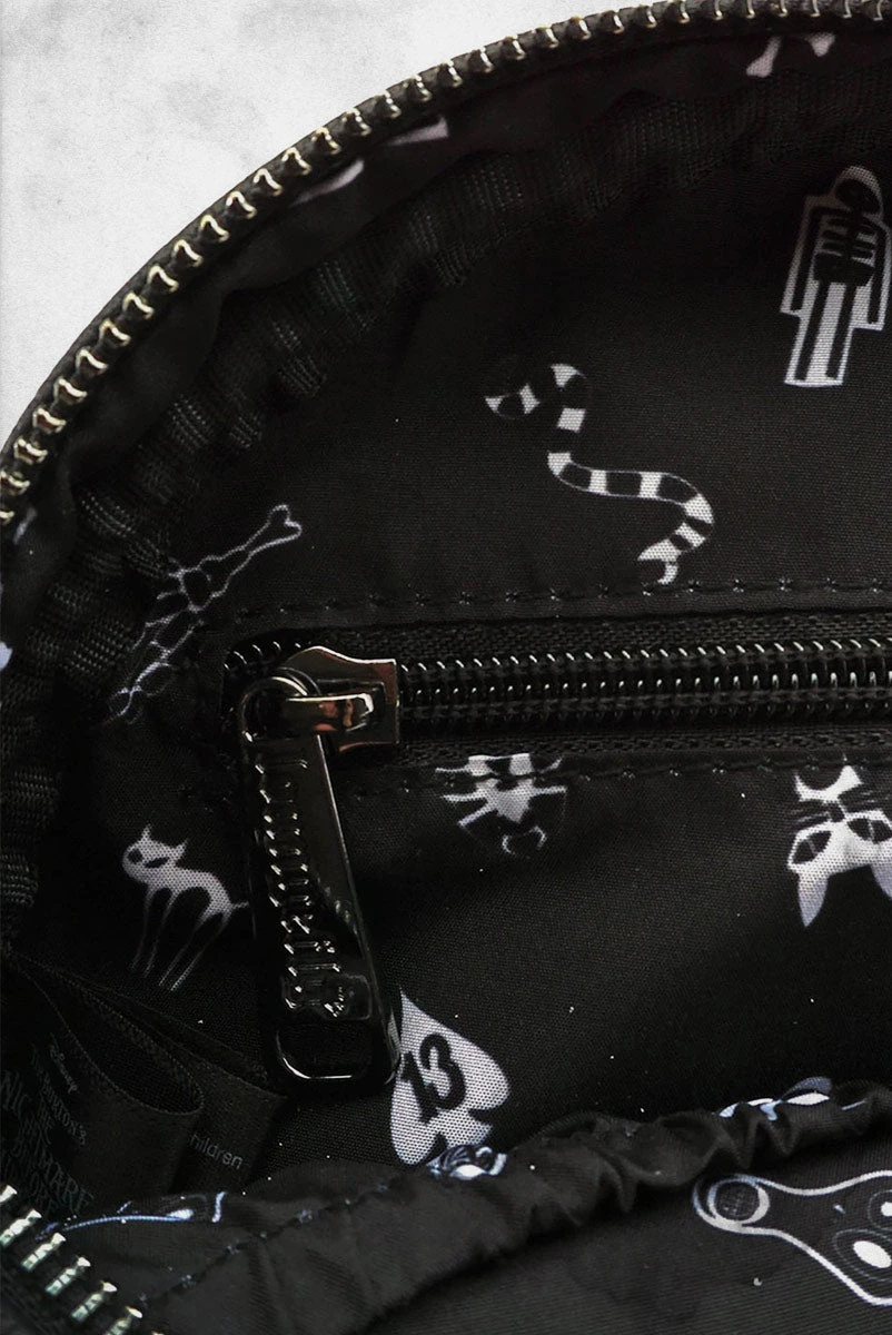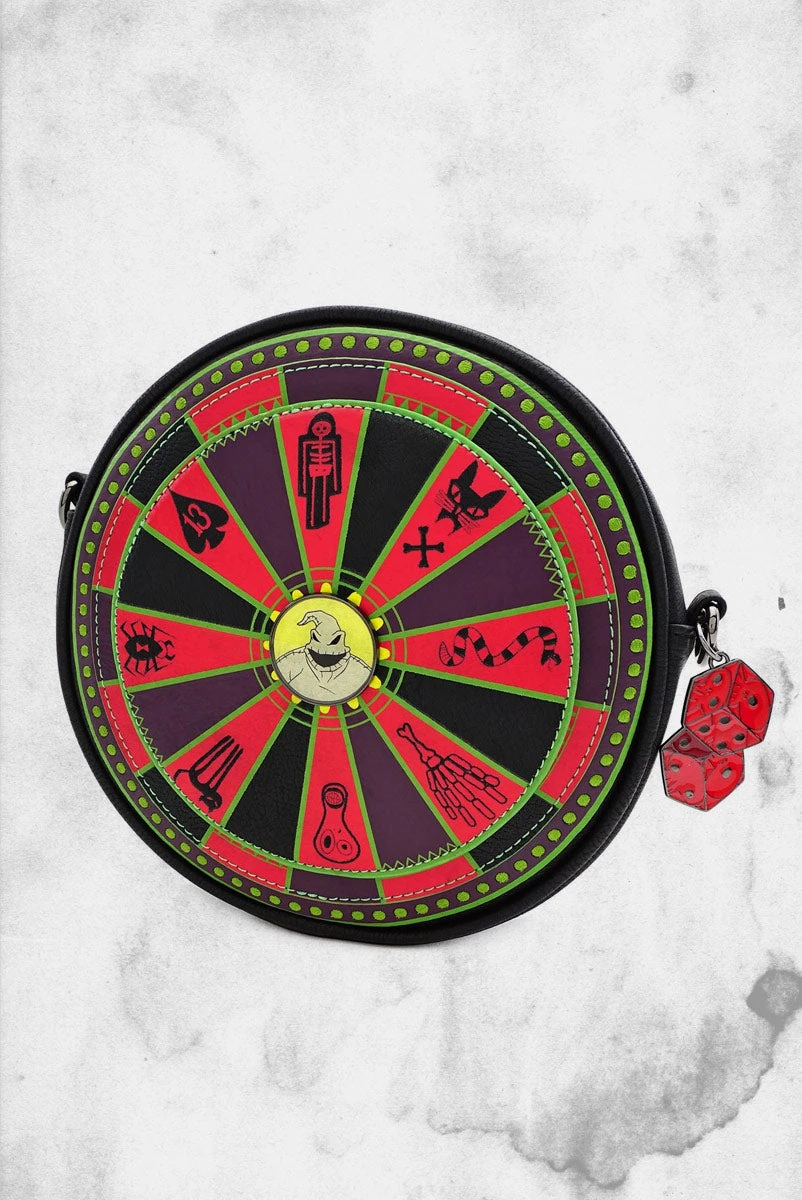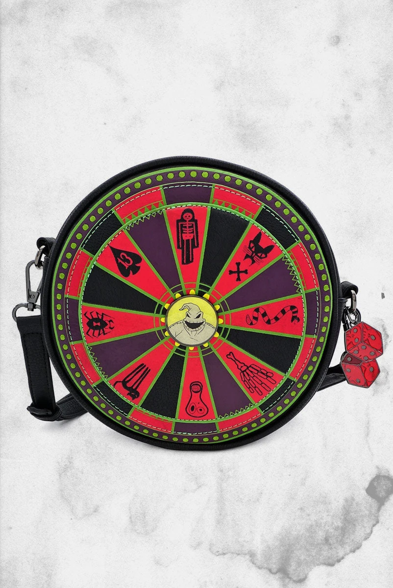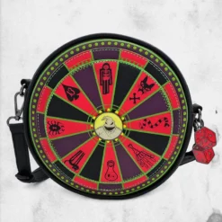 If you need a fun gift for a Nightmare Before Christmas fan in your life, this officially licensed Nightmare Before Christmas Oogie Boogie faux leather crossbody bag is a bet worth taking! Featuring Oogie Boogie and his classic gambling wheel, this bag has a fun design, on the inside and out! It’s a must-have for those park surfing Nightmare Before Christmas loving fans.