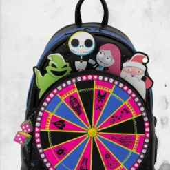 He’s the shadow on the moon at night, filling your dreams to the brim with fright! This officially licensed backpack is inspired by the iconic Oogie Boogie sequence in Nightmare Before Christmas. Roll the dice with the dice enamel zipper charm. The fluorescent print glows under blacklight. The lining inside is filled with creepy crawlies – just like Oogie Boogie himself!