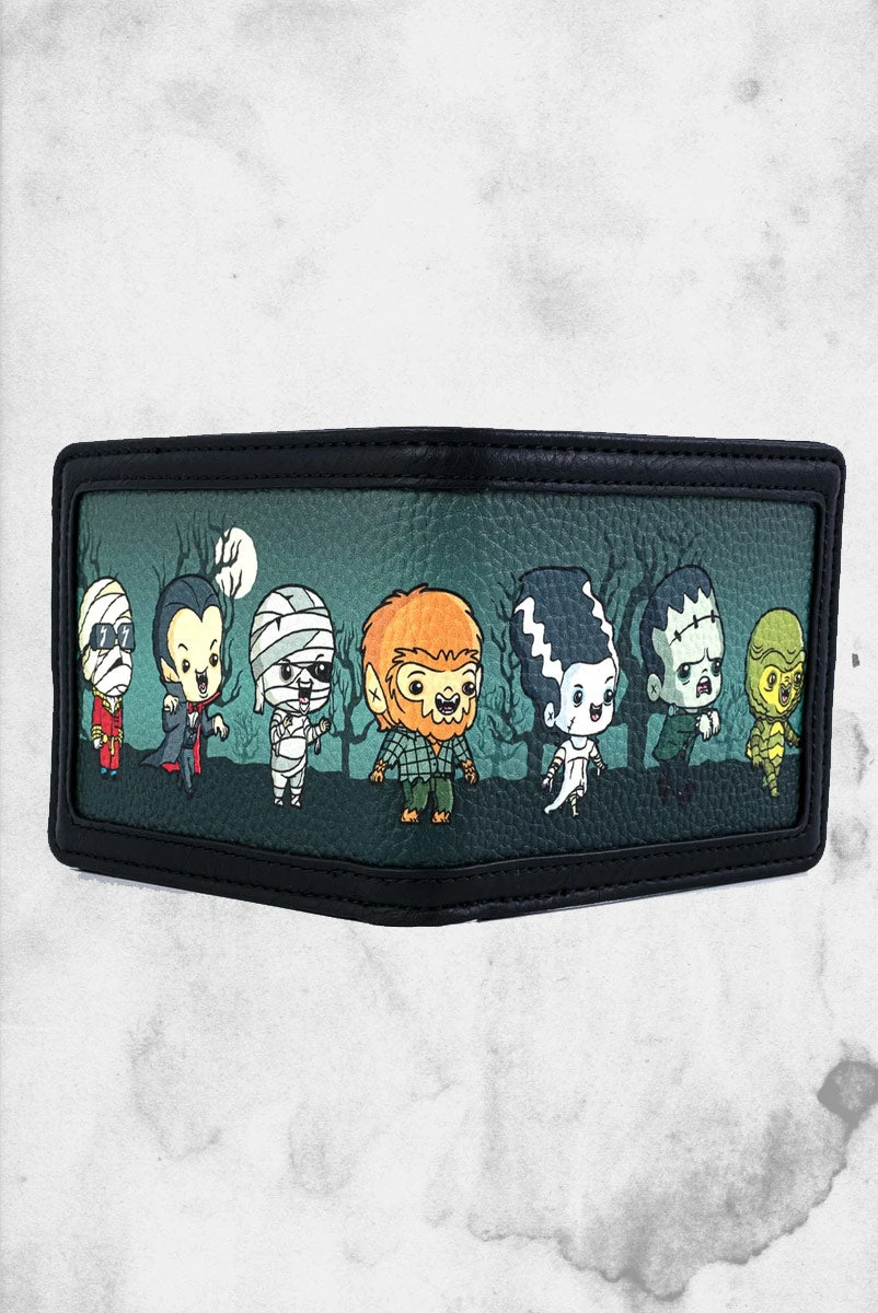 This wallet showcases our favorite universal monsters, Frankenstein, Wolfman, Dracula, The Mummy, The Invisible Man and The Bride of Frankenstein. How adorable are they all. Make sure that you look for the entire collection that is exclusive to Loungefly utilizing this amazing chibi styled artwork.