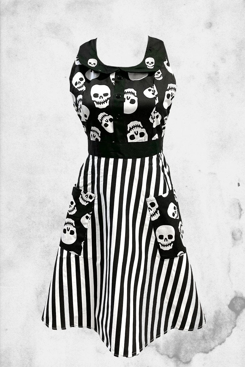 Turn up the music and get lost in your kitchen. It’s time to cook up your favorite tasty treats! Take it up a notch with the Lust For Skulls pattern apron. Nicely detailed with a rounded collar, buttons and two large front pockets for your phone or recipes.