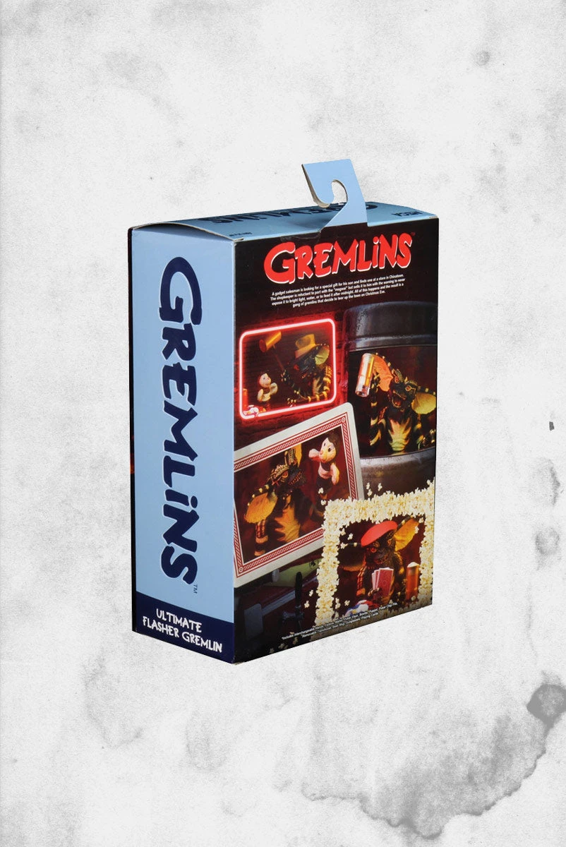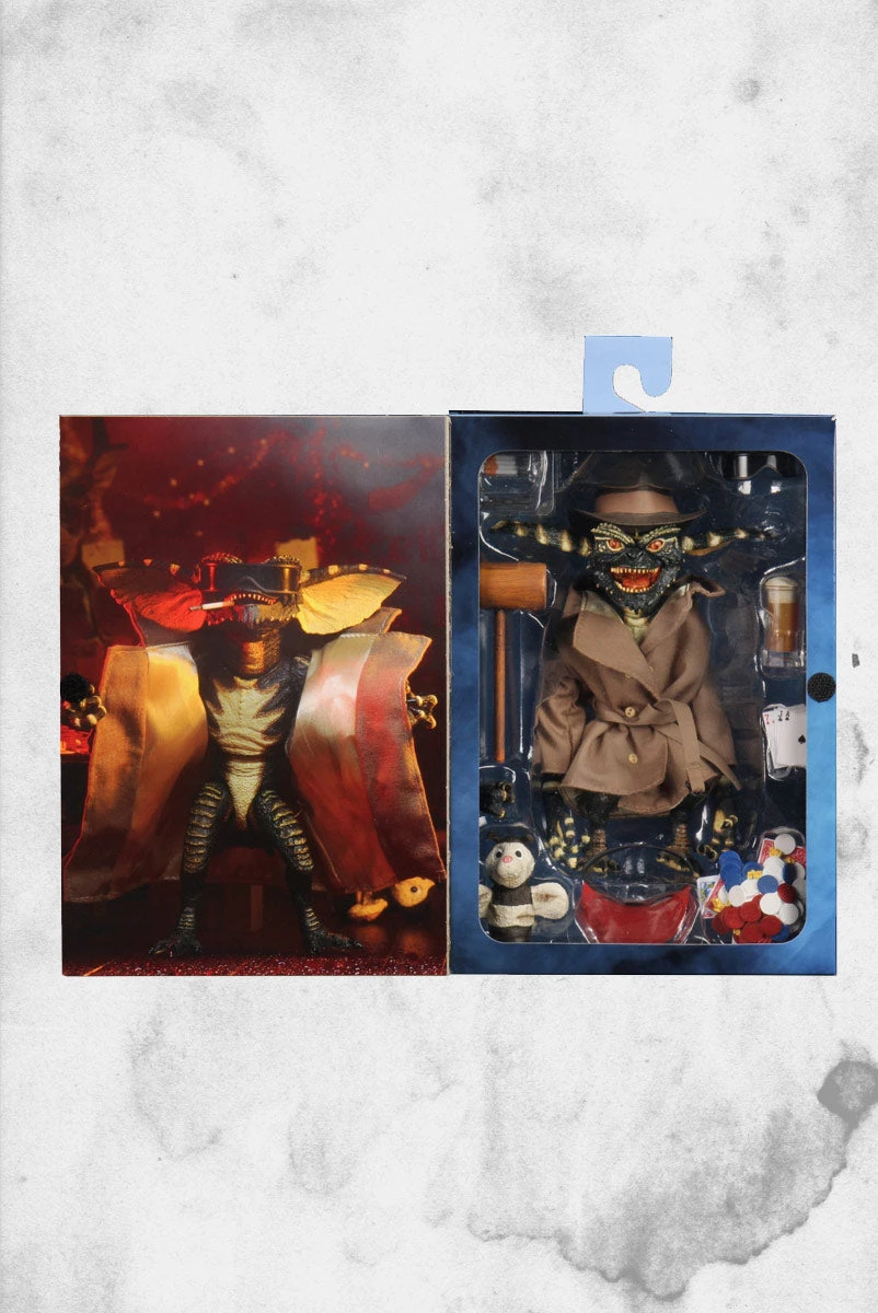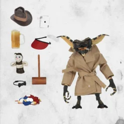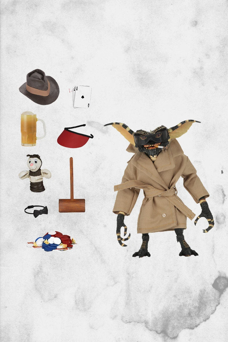 Based off of the Dorry’s Tavern scene in Gremlins, the Flasher Gremlin comes equipped with a removable fabric trench coat. Not only that, but he is also super loaded with new accessories.