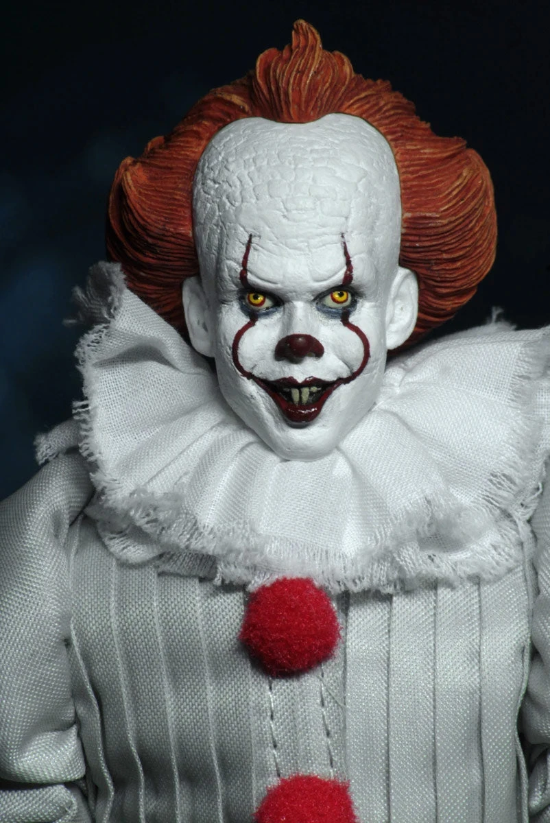 Pennywise waits for you. From the acclaimed 2017 horror film IT, drawn from the pages of Stephen King’s original novel, NECA presents its most deluxe and elaborate clothed figure ever! The ornate costume of Pennywise