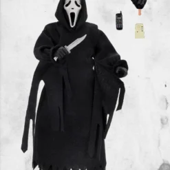 Making a return to the 8″ Cloth format is Ghostface from Scream! Ghostface stands 8″ tall and is fully poseable, with a tailored robe, hood and sleeves modeled after the real-life Ghostface costume. He features a screen-accurate sculpted mask, interchangeable hands, and comes complete with his signature knife. Blister card packaging with removable protective clamshell and all new custom illustrated artwork.