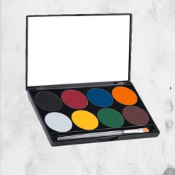 The Paradise Basic Color Palette includes 8 stunning Paradise Face Paints in a sleek convenient compact case. Paradise Face Paints are a moist, semi-soft, glycerin-based cake makeup, featuring vibrant color that dries quickly with minimal rub-off, yet are easy to blend and wash off. Paradise AQ Makeup includes aloe and chamomile and the enriching emollients glycerin, avocado oil and cocoa butter. Safe and gentle on skin,