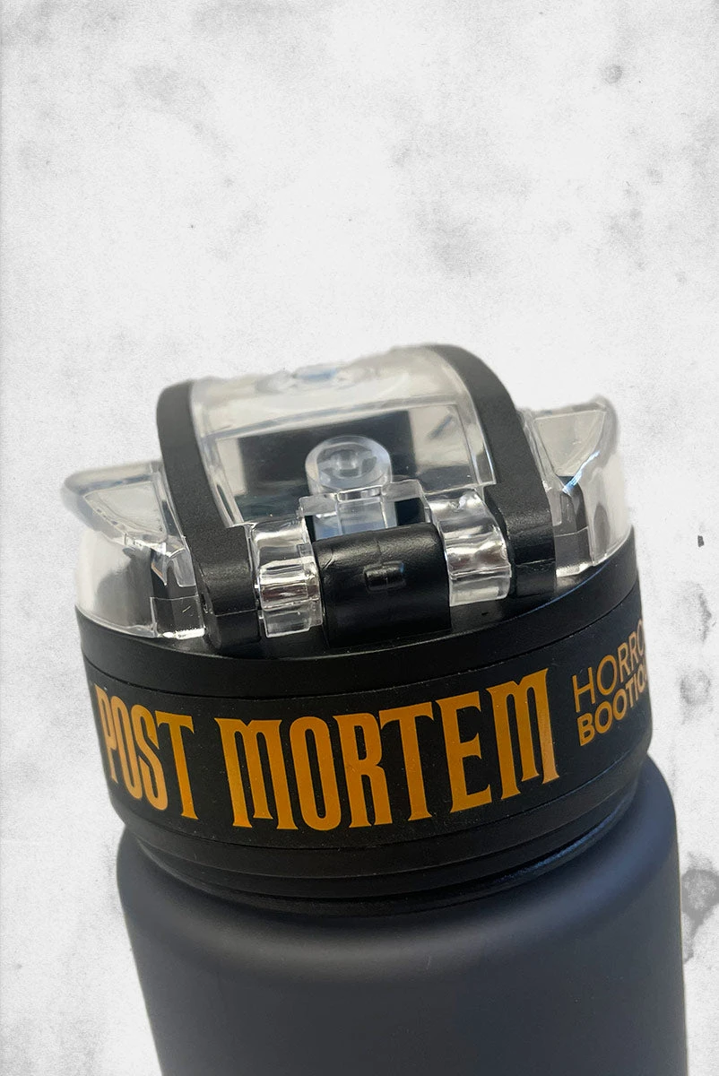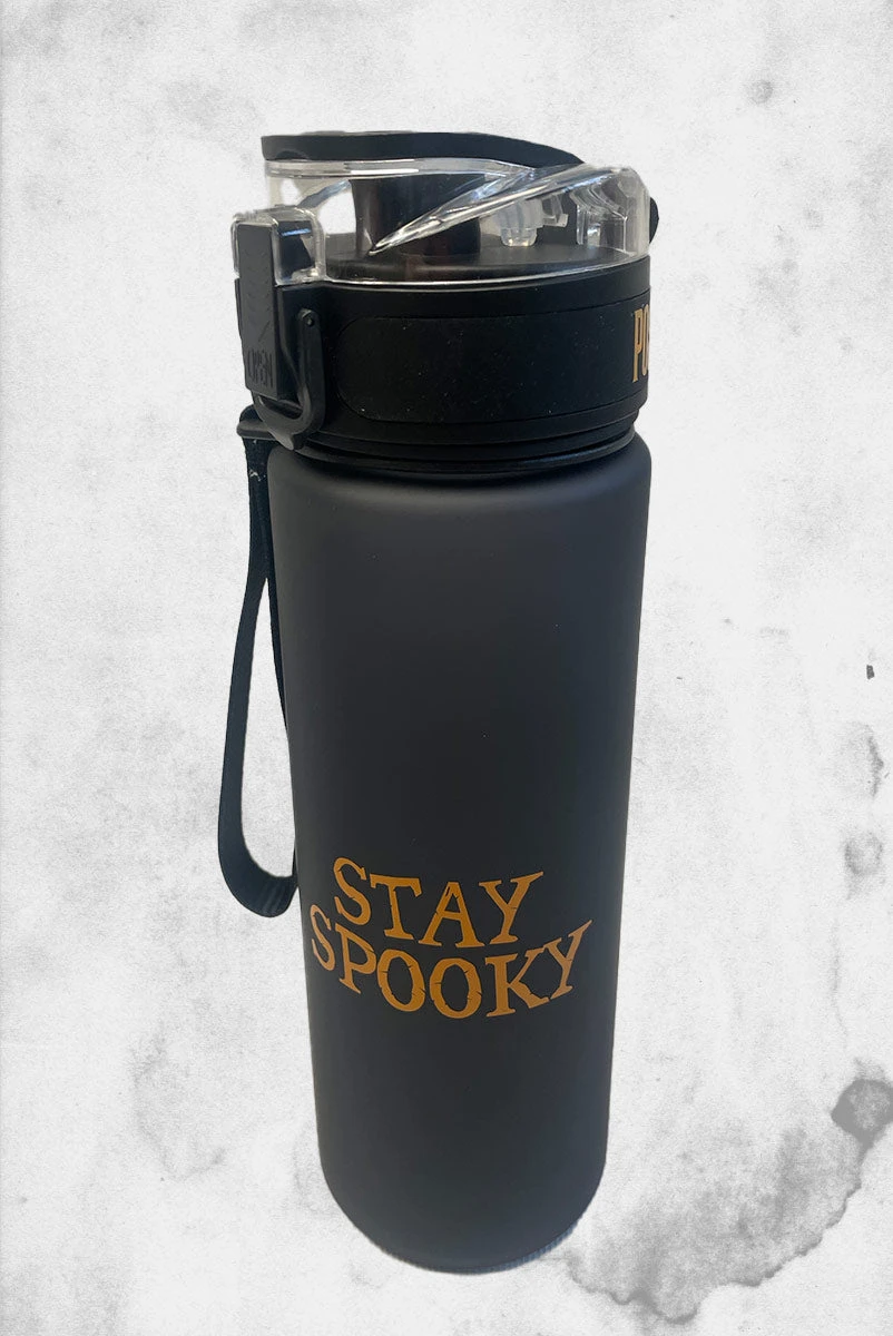 Wether you’re going to the gym or hanging out with friends show your love for Halloween with these Post Mortem Horror Bootique exclusive and original water bottles. Featuring a matte black design with the classic pumpkin jack-o-lantern face on one said and “Stay Spooky” on the other.