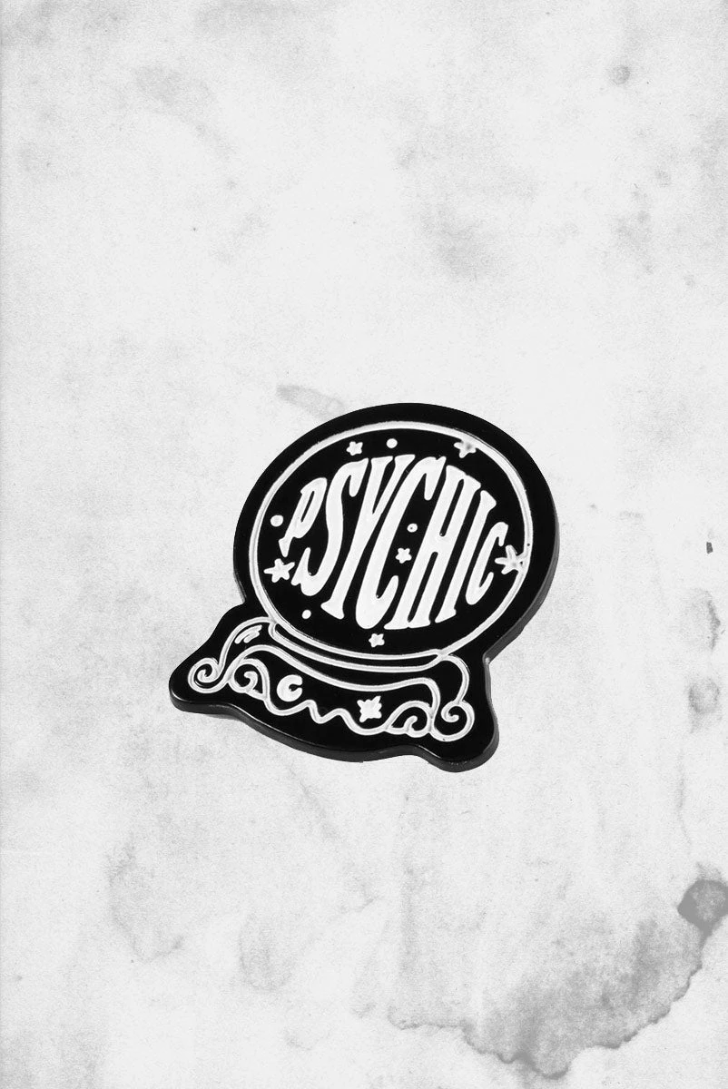 Statement crystal ball lapel pin, in white and contrasting black enamel. The ideal way to add some creepy vibes to yer fav looks!