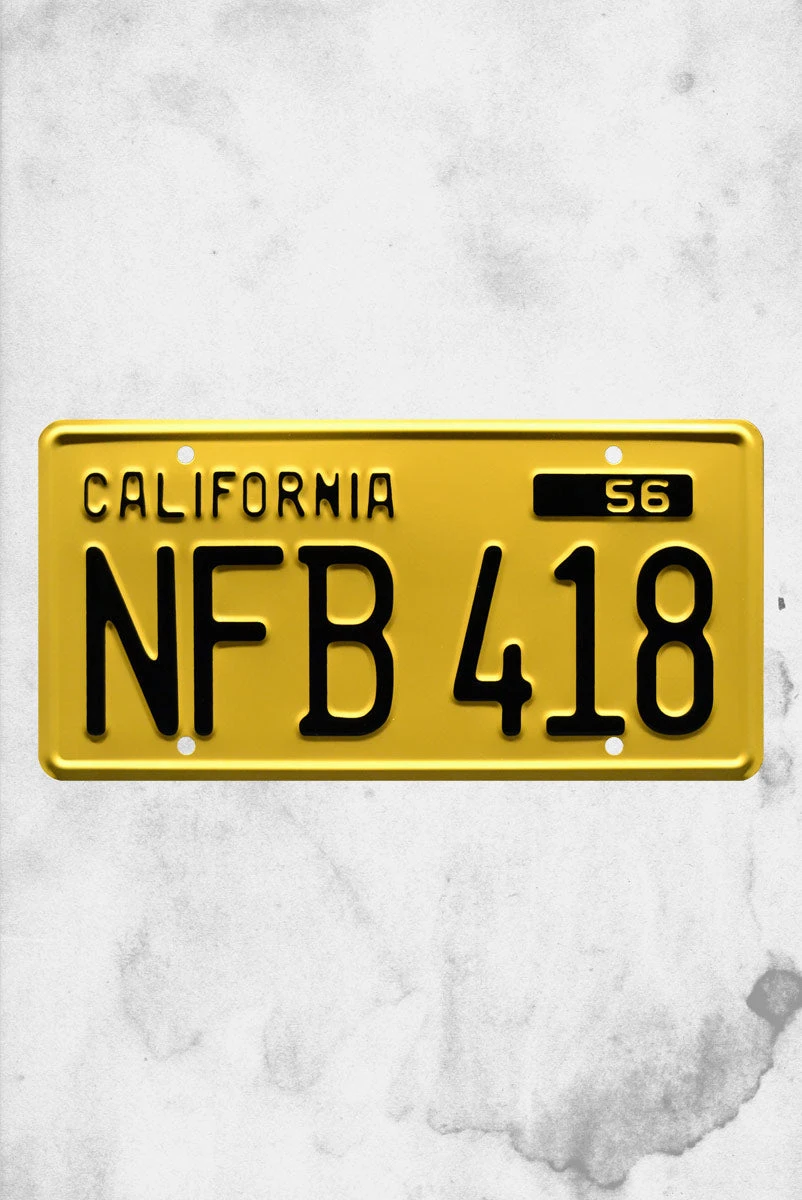 The gold California NFB 418 License Plate is produced as seen on Marion Crane’s Ford Custom 300 in the 1960 horror film Psycho, starring Anthony Perkins and Vera Miles.