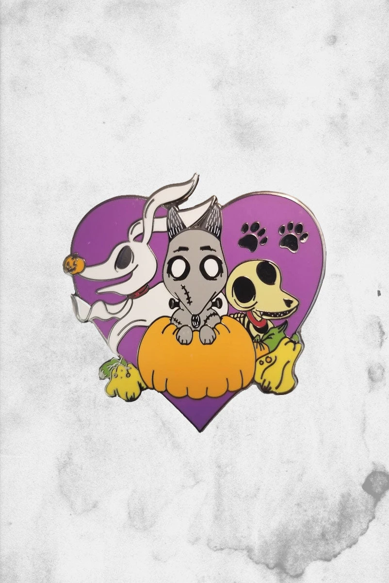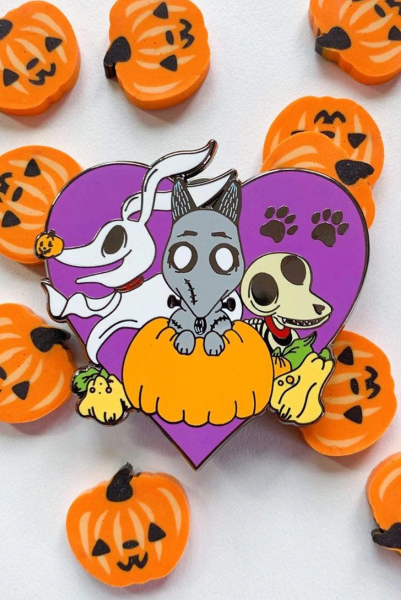Who doesn’t love the classic Halloween animated puppies? Enjoy this locking back enamel pin designed by Spooksieboo.