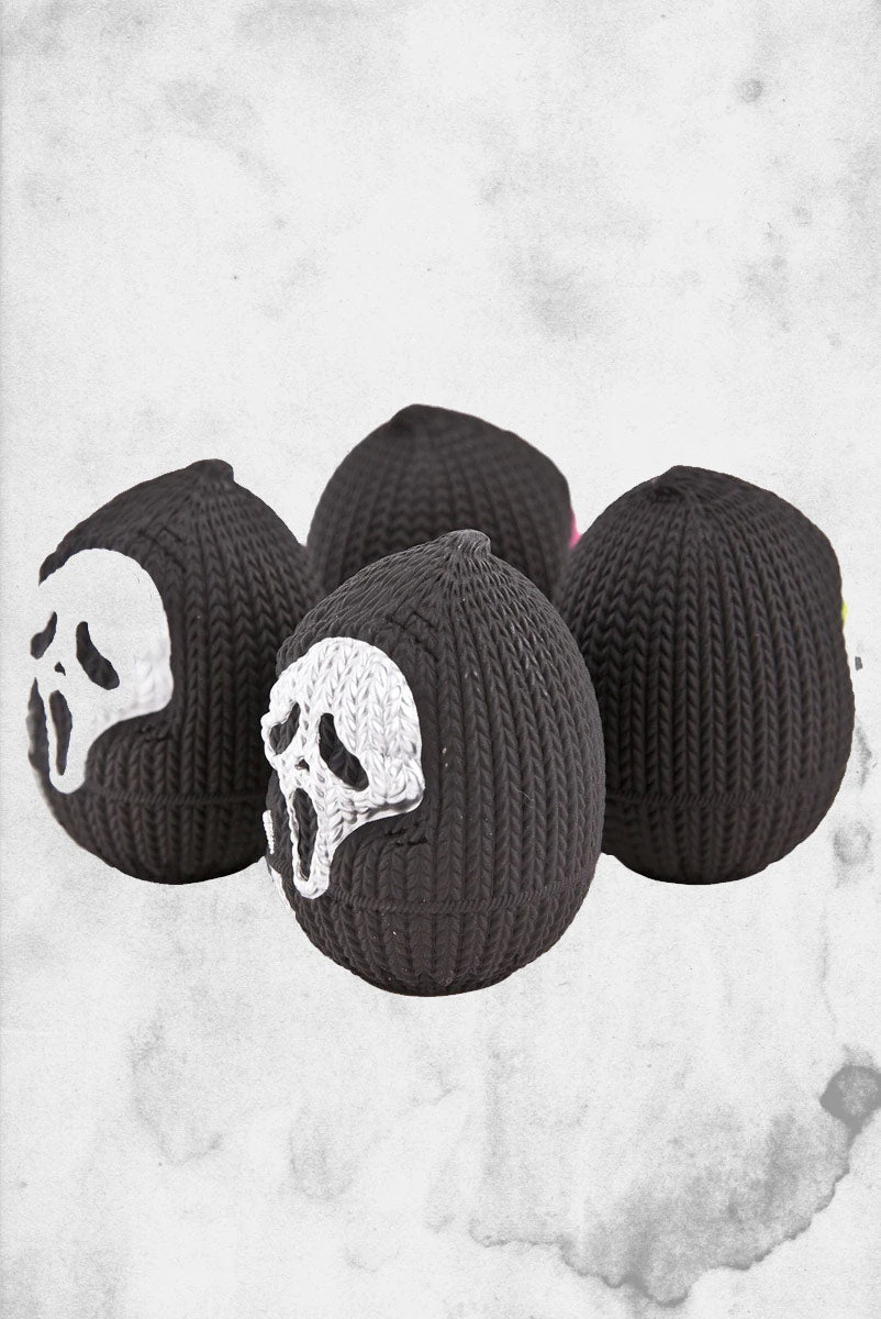 The Handmade line continues with Ghostface, this time recreated as roughly 2 1/2-inch tall collectible egg-shaped knit toys!