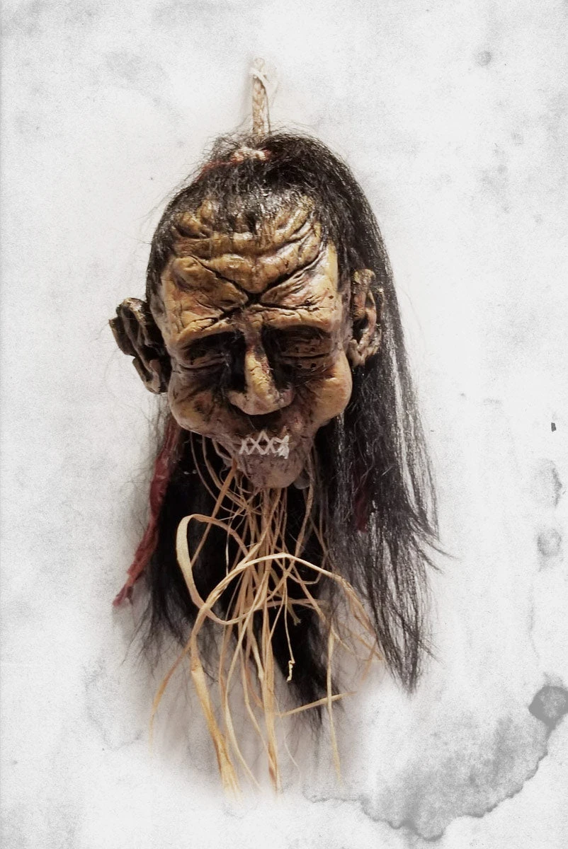These heads are hand-pulled, painted, inlaid with hair by the masters of gore, Gore Galore. Each head will have a slight variance due to the hand creation of each one. These shrunken heads are a must for any Halloween decorator, haunted house or lover of all things creepy.