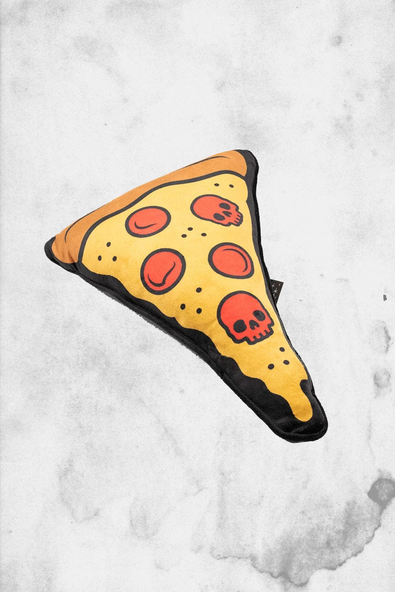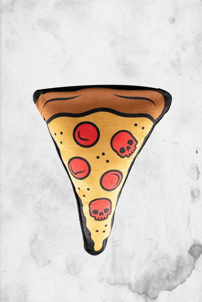 Love pizza? This is the pillow for you! Cuddle up with this slice o’ pie that’s topped with pepperoni and skulls! This super soft, fleece throw pillow will look great on your favorite chair, bed or anywhere else you might want to toss it.