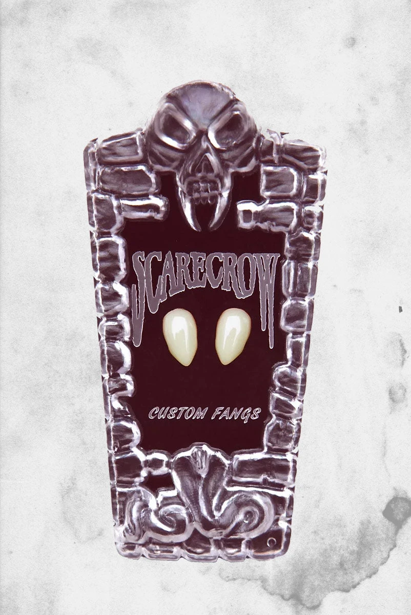 Small Sexy Deluxe Custom Scarecrow Fangs are designed for people with smaller teeth, or those looking for a subtler look. They may fit either canines and/or incisors or bottom teeth. Fast, easy, comfortable, and totally realistic. Natural color fang caps are shiny, rigid and beautifully contoured to look great in any mouth.