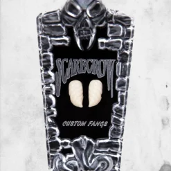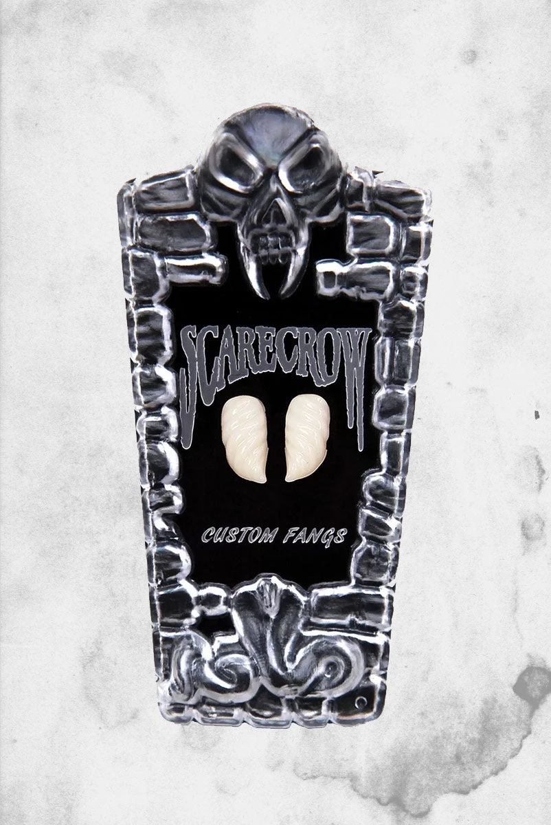 Sabers Extra Long Deluxe Custom Scarecrow Fangs are 1 inch long from gumline to tip and are designed for an extreme look. They may fit either canines and/or incisors. Fast, easy, comfortable, and totally realistic. Natural color fang caps are shiny, rigid and beautifully contoured to look great in any mouth.