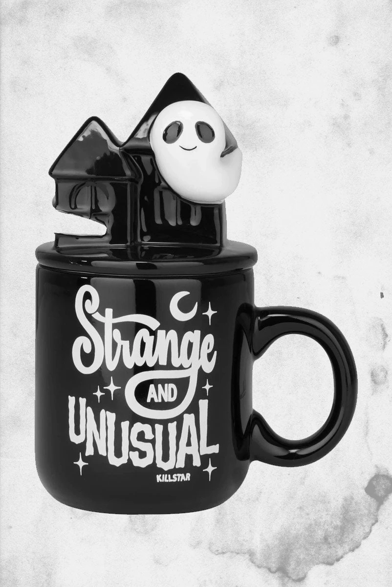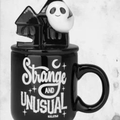 Drinking coffee to make mortals bearable since 1819. In a haunted house shape, with contrast ghost and print, large in size and with a gloss finish – good enough for the Dark Lord himself! And it comes with a lid!