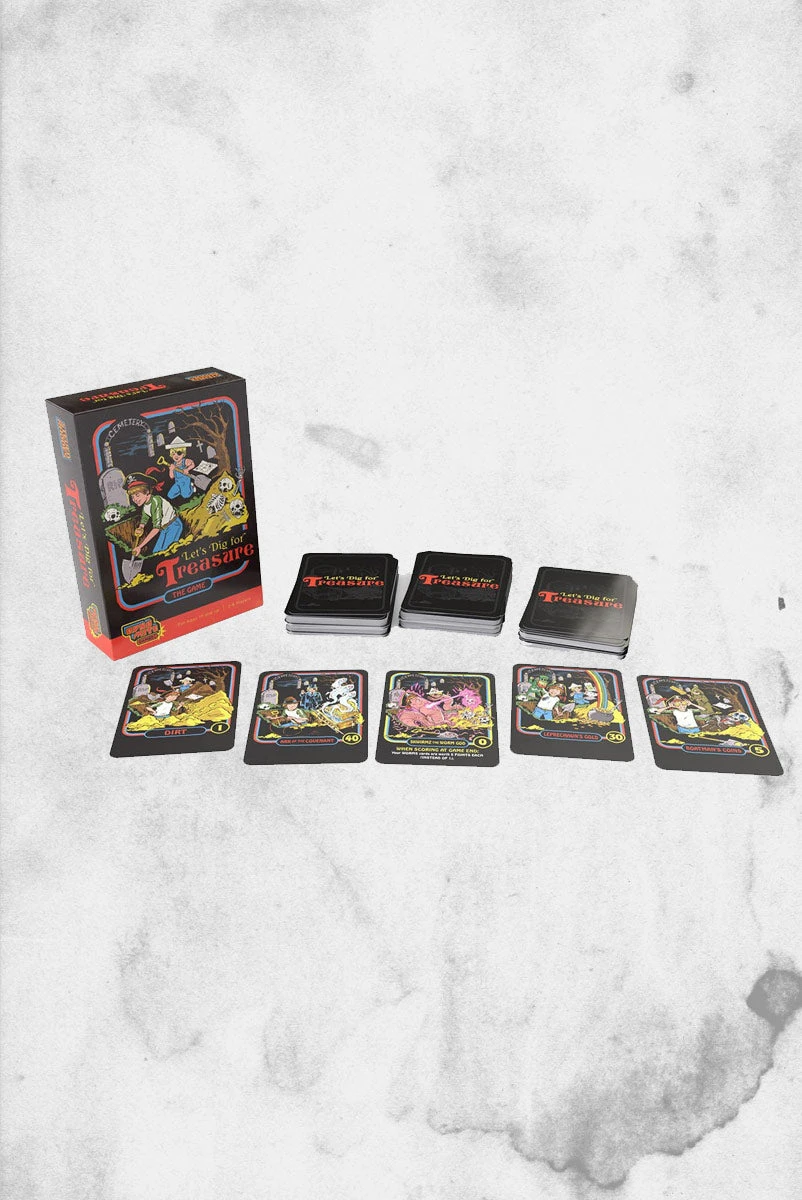 Featuring fan-favorite artwork by Steven Rhodes, a graphic artist and illustrator best known for his offbeat reimagining of children’s activity books from the 70s and 80s, these three new games combine nostalgia with twist of darkness. Let’s Dig for Treasure is the fortune and glory push-your-luck experience where you’ll be digging for all kinds of zany stuff while looking for cards worth a lot of points or that trigger powerful effects!