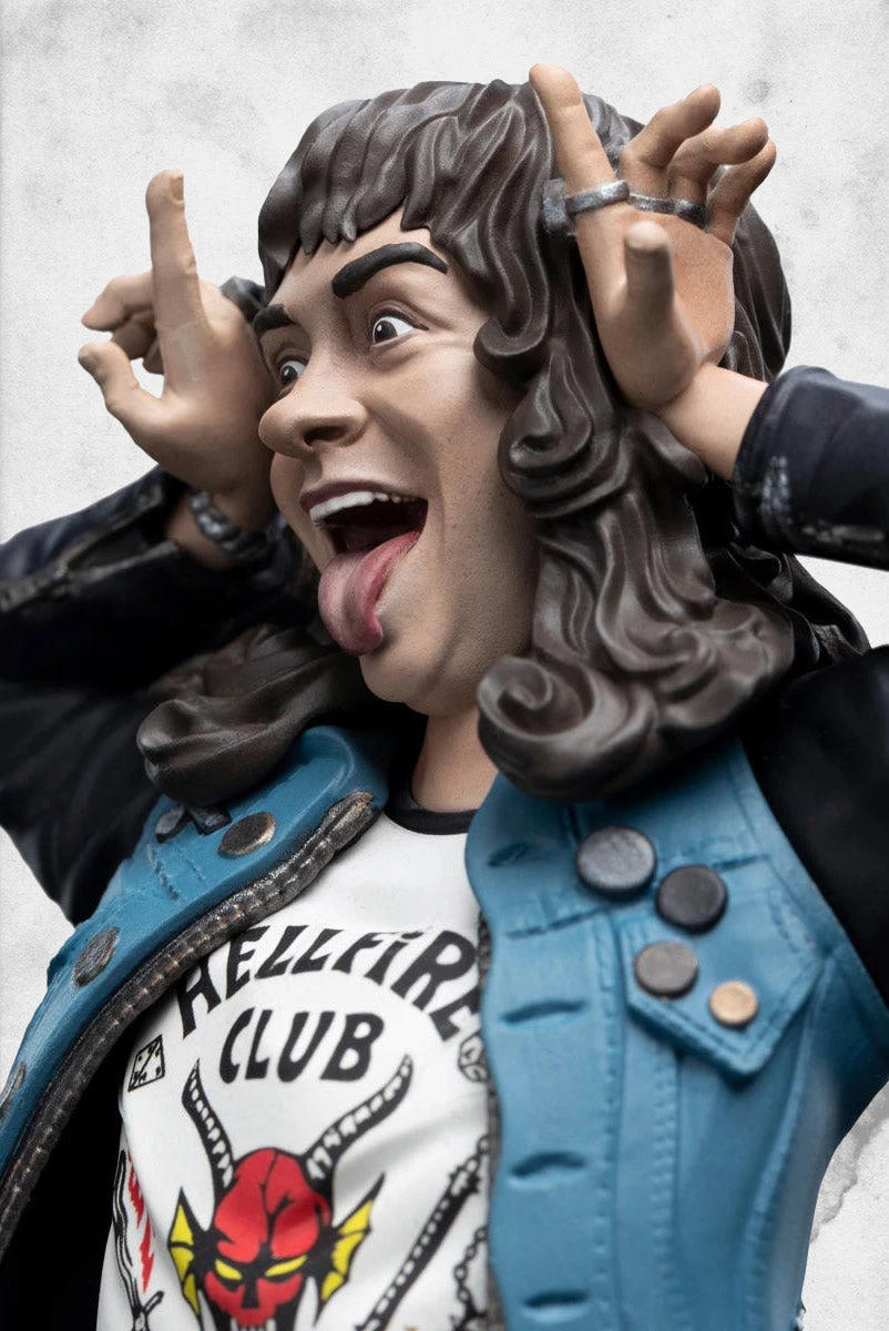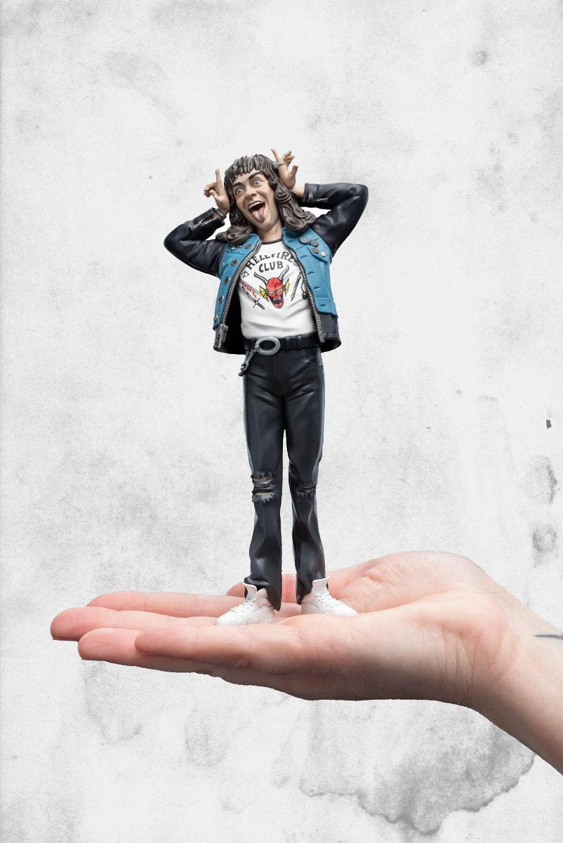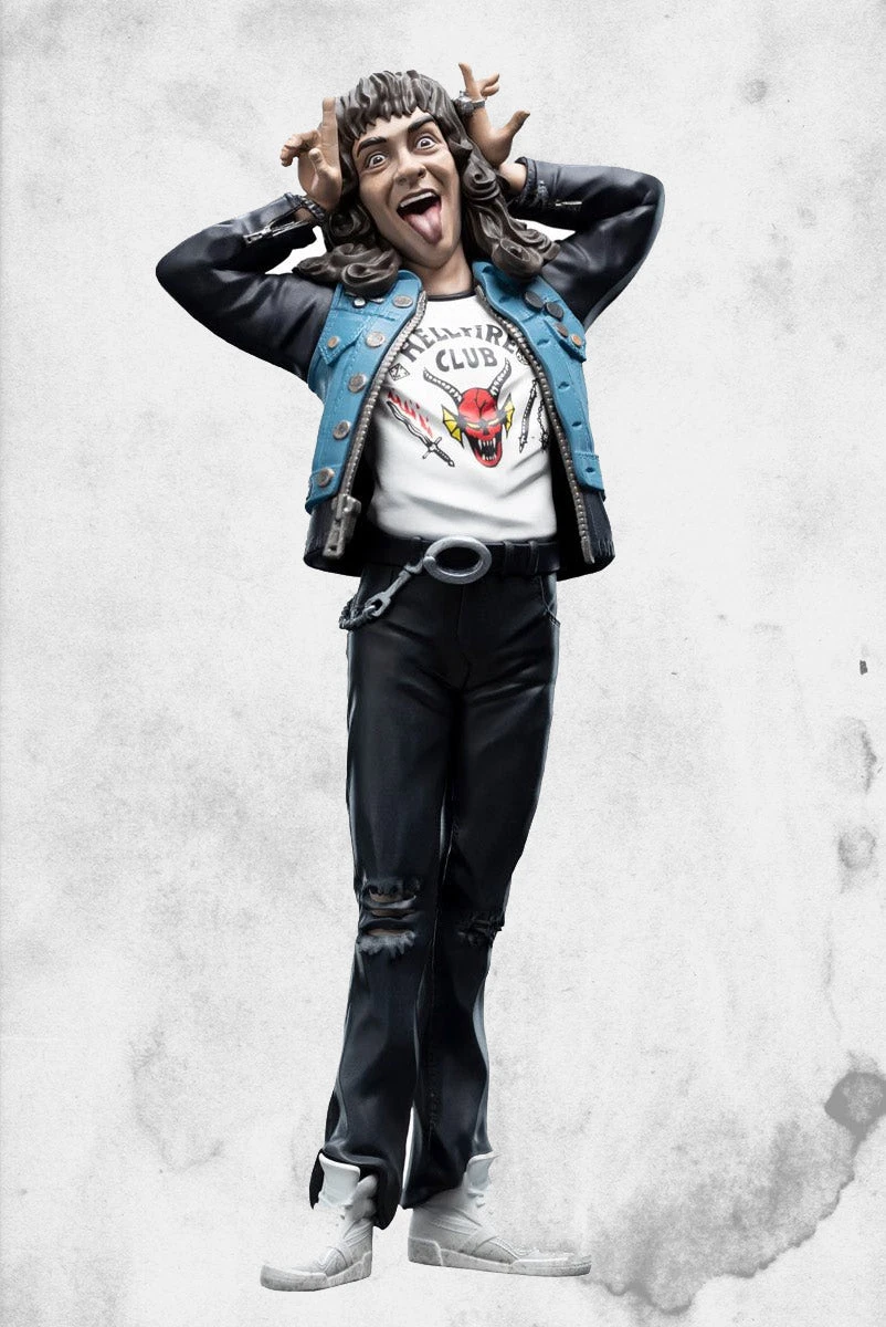 From Season 4 of Netflix’s Stranger Things, comes a limited edition Mini Epics vinyl figure of the fan-favorite Eddie Munson raising his horns! The Stranger Things Hellfire Eddie Mini Epics Vinyl Figure – San Diego Comic Con 2023 Exclusive!
