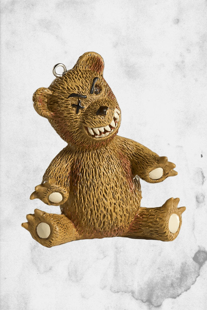 He might seem cute at first… but take a closer look, and you’re in for a nasty surprise! This teddy is anything but cuddly, with his sharp claws, fierce fangs, and missing eye.