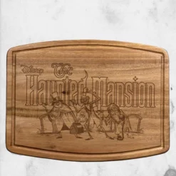 Welcome to The Haunted Mansion! We stand ready to serve you… and scare you! Inspired by Disney’s popular The Haunted Mansion ghost-train attraction at its parks, this excellently detailed Haunted Mansion Hitchhiking Ghosts Cutting and Serving Board – Entertainment Earth Exclusive will provide a chilling welcome to your dinner guests. it measures about 14-inches tall x 9-inches wide x 4/5-inch thick and features a recessed juice groove on one side for catching cheese brine, olive juice, or meat juice, and a smooth texture on the other for food presentation.