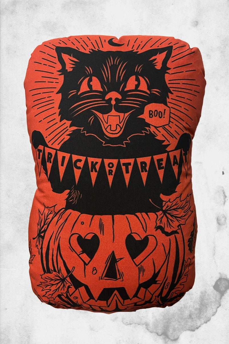 What better time of year than Halloween? Show your love for Halloween all year-round in your crypt with this classic Halloween themed cat pillow!