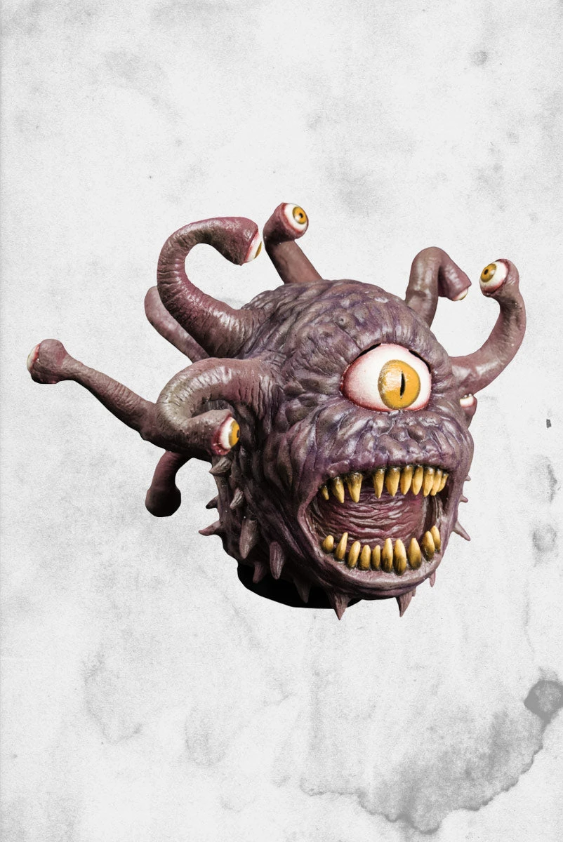 The Beholder is one of the earliest D&D creatures and a true fan favorite! This expertly sculpted Beholder mask features 10 protruding eye stalks, spikes and gapping toothy maw this mask is sure to terrify!